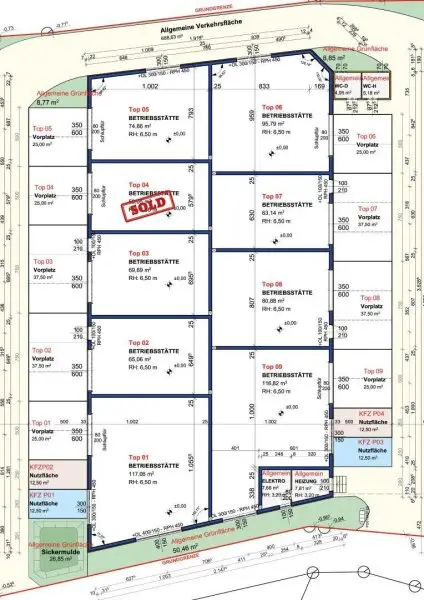 o Betriebshallen und Gewerbeflächen mit 6,5 Meter Höhe
