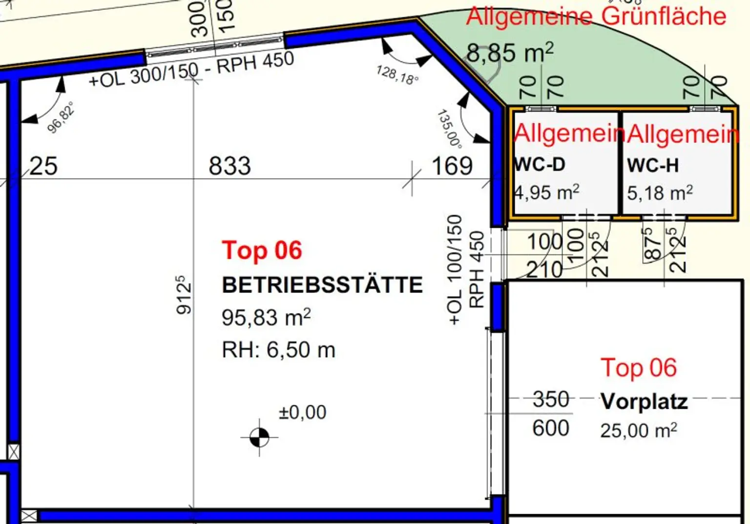 * allgemeine Sanitärbereiche (Damen, Herren und Behinderten WC)