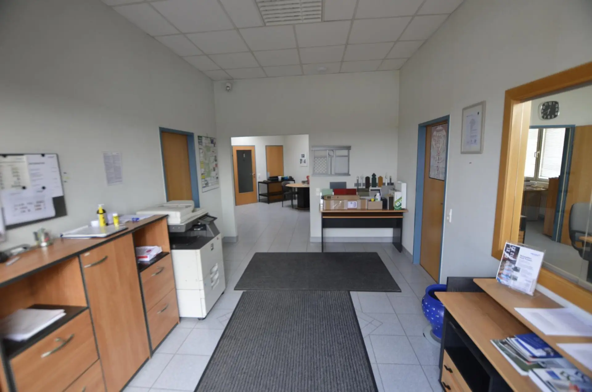 Büro: Mehrere Büroräume nach Plan, Vorraum, Flur, 2 Küchen, Sozialraum, Spindraum, Duschen, mehrere Toiletten, Serverschrank, Heizung, Datenkabeln, Der Parkplatz ist gepflastert. Um die Baukörper sind noch Restflächen von rd. 3500 m².