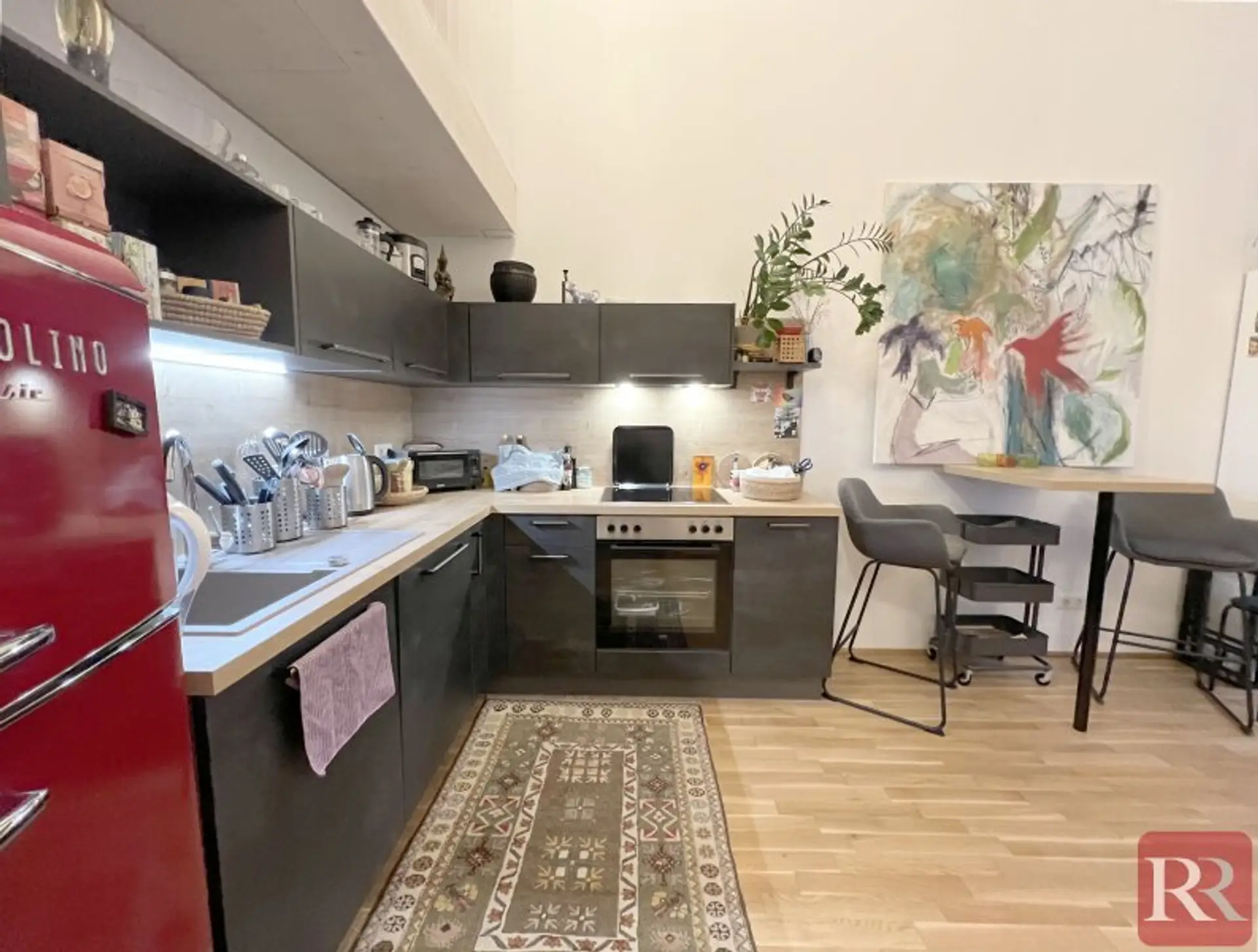 Über den Vorraum gelangt man in den großzügig gestalteten Wohnbereich mit integrierter Einbauküche. Die Galerieebene bietet trotz der geringen Raumhöhe eine ideale Schlafmöglichkeit und verleiht der Wohnung ihren besonderen Charakter.