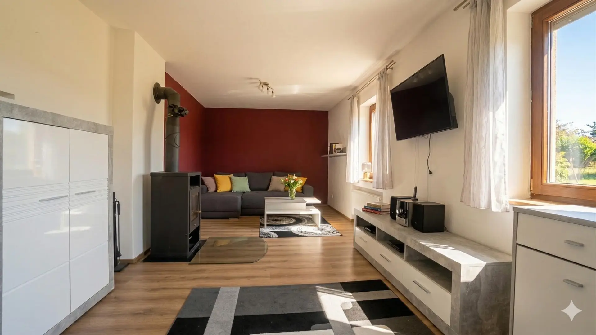 - Helles, gemütliches Wohnzimmer als Herzstück des Hauses.