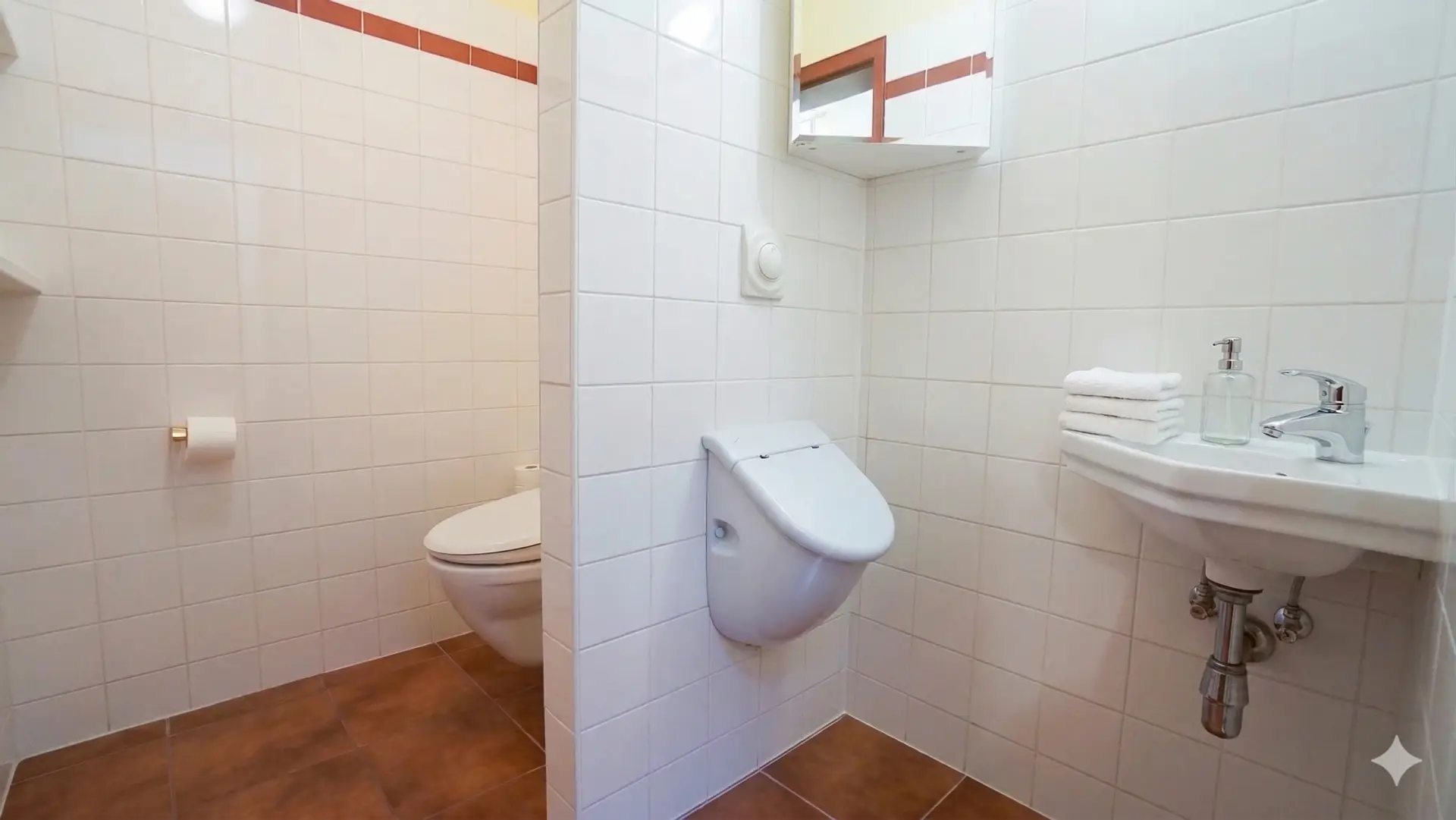 - WC 3,02 m², ausgestattet mit Handwaschbecken, Pissoir und Toilette.