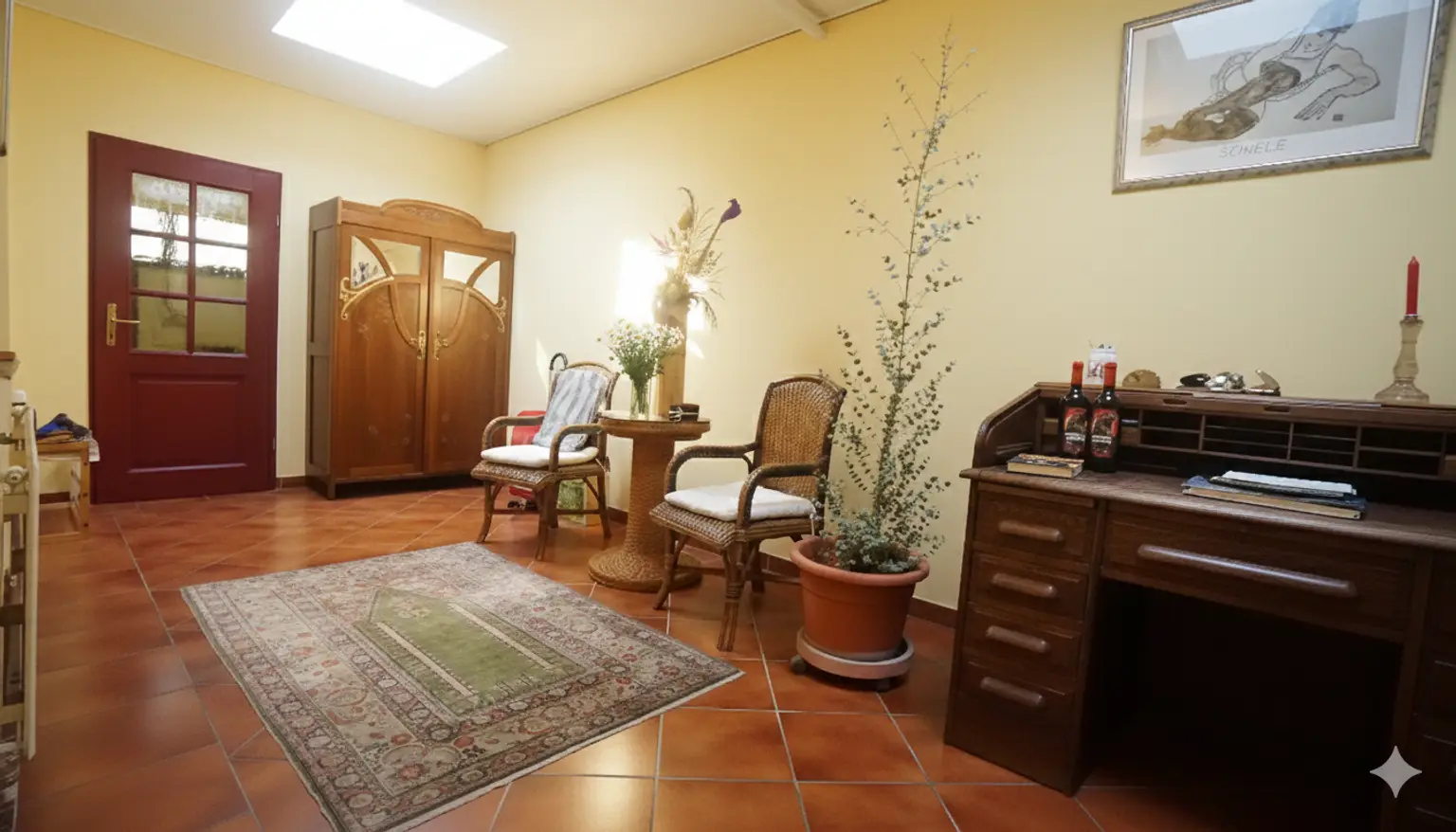 - Schlafzimmer 19,72 m², welches einen Ausgang in den Garten hat.