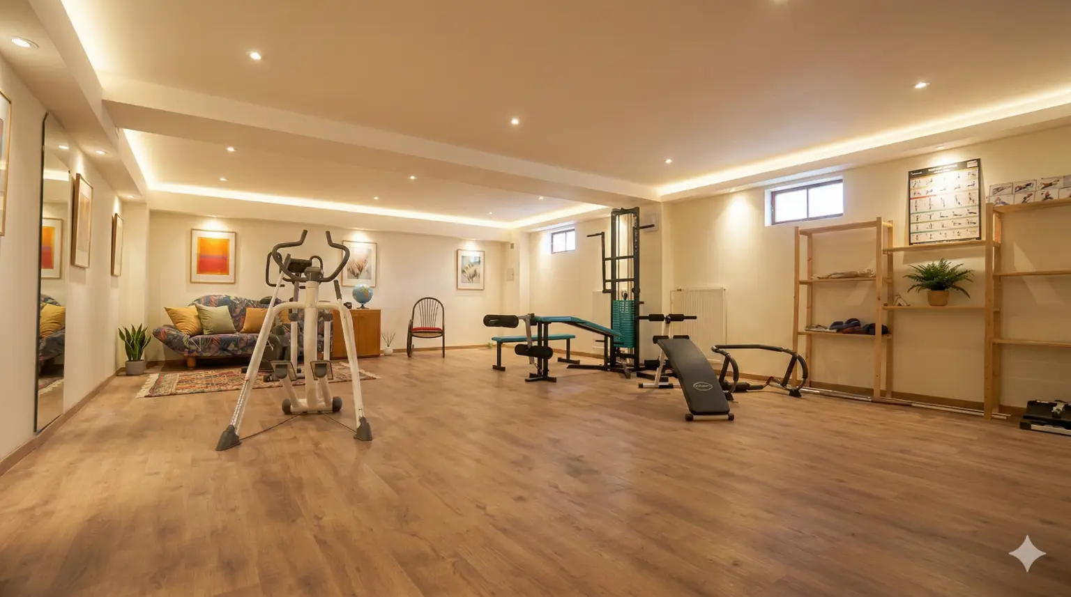 - Keller 55,83 m², welcher derzeit als Fitnessraum genutzt wird.