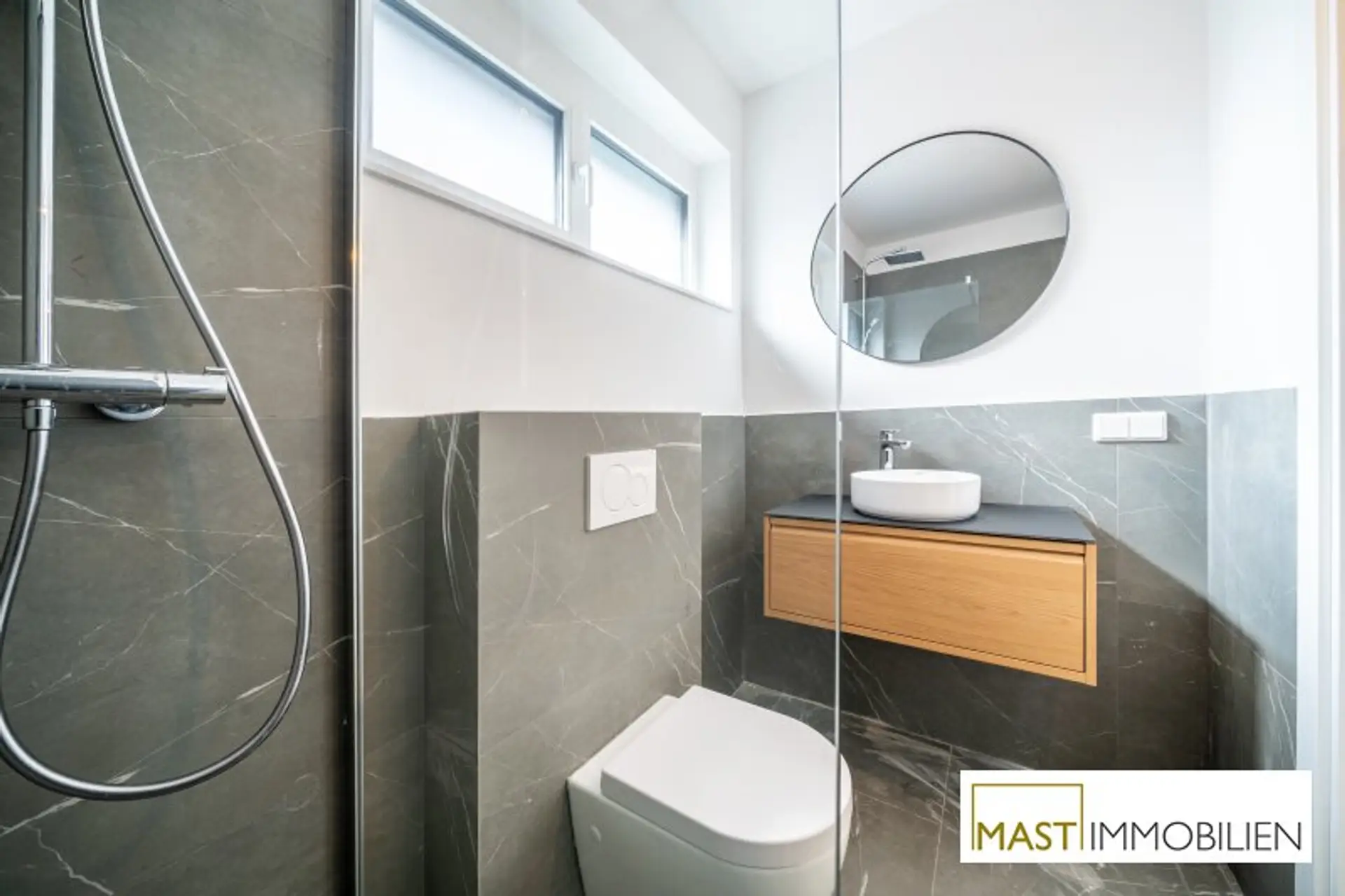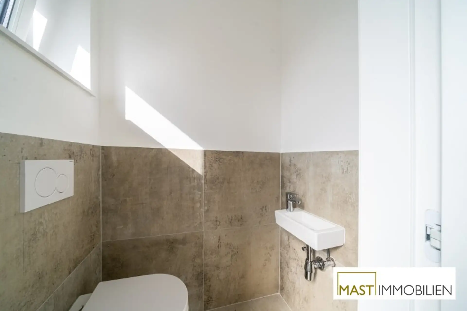 * großformatige, moderne Fliesen in den Sanitärräumen
