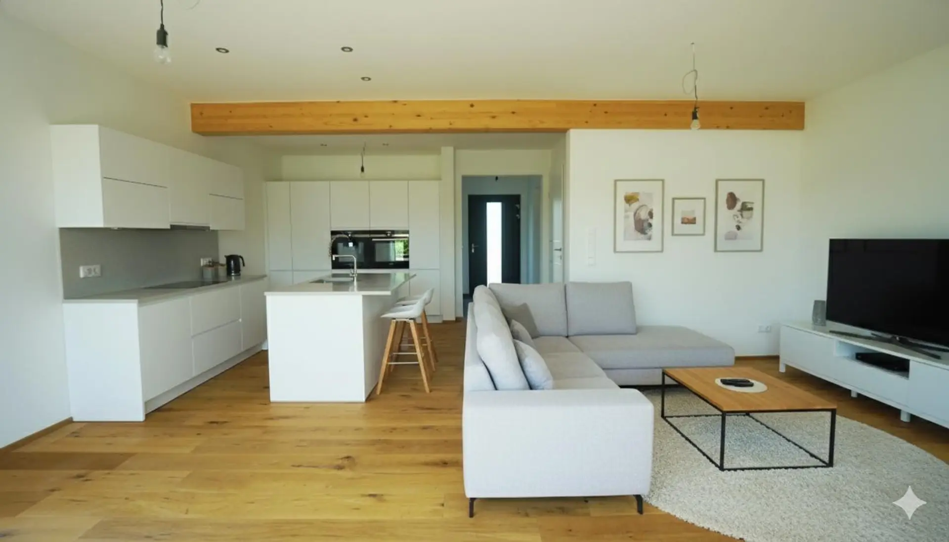 Von hier aus haben Sie direkten Zugang zur Terrasse und in Ihren privaten Garten – der ideale Ort für gesellige Abende oder entspannte Stunden.