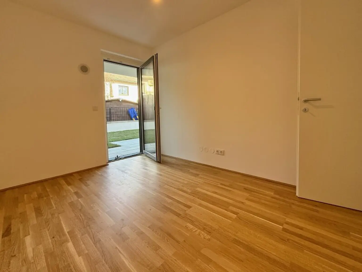 Die Gartenwohnung verfügt über ca. 58 m² Wohnfläche. Sowohl das Wohnzimmer als auch die zwei weiteren Zimmer bieten großflächige Fenstertüren und schaffen helle, freundliche Räume mit einem angenehmen Wohngefühl. Vom Wohnzimmer genießt man direkten Zugang zur ca. 30 m² großen Terrasse und zum ca. 75 m² großen Eigengarten.