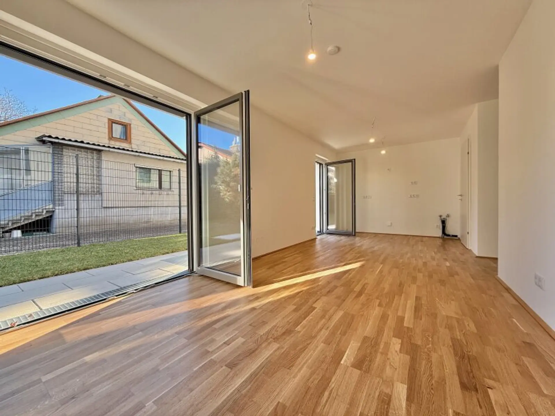 * 3‑fach verglaste Holz‑Alu‑Fenster und Sonnenschutz in allen Wohnungen (Rollladen, Raffstores, Markisoletten)
