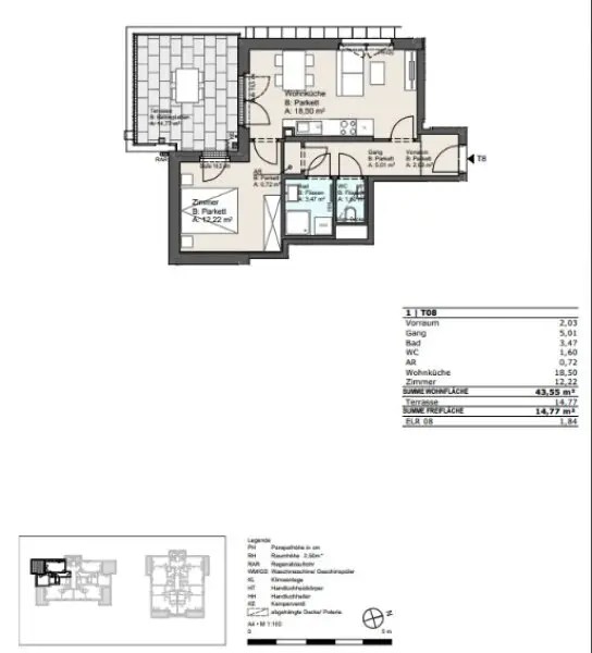 Top 08 | 2 Zimmer | ca. 43,55m² + ca. 14,77 m² Terrasse