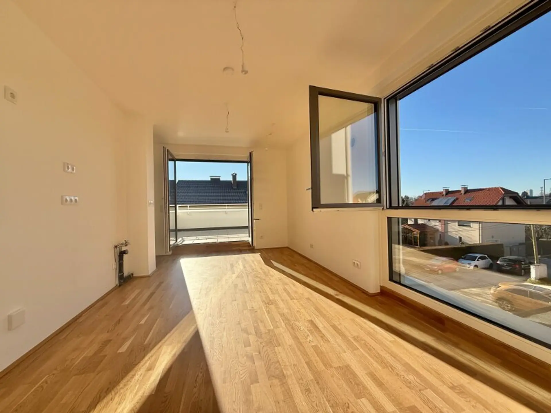 Die ca. 43,55 m² Wohnung bietet einen perfekte Raumaufteilung für Singles oder junge Pärchen. Die ca. 14,77m² große Terrasse ist von der Wohnküche und vom Schlafzimmer direkt zugänglich. Alle Zimmer sind mit großflächigen, bodentiefen Fenstern ausgestattet und bieten ein freundlich-helles Wohnambiente.