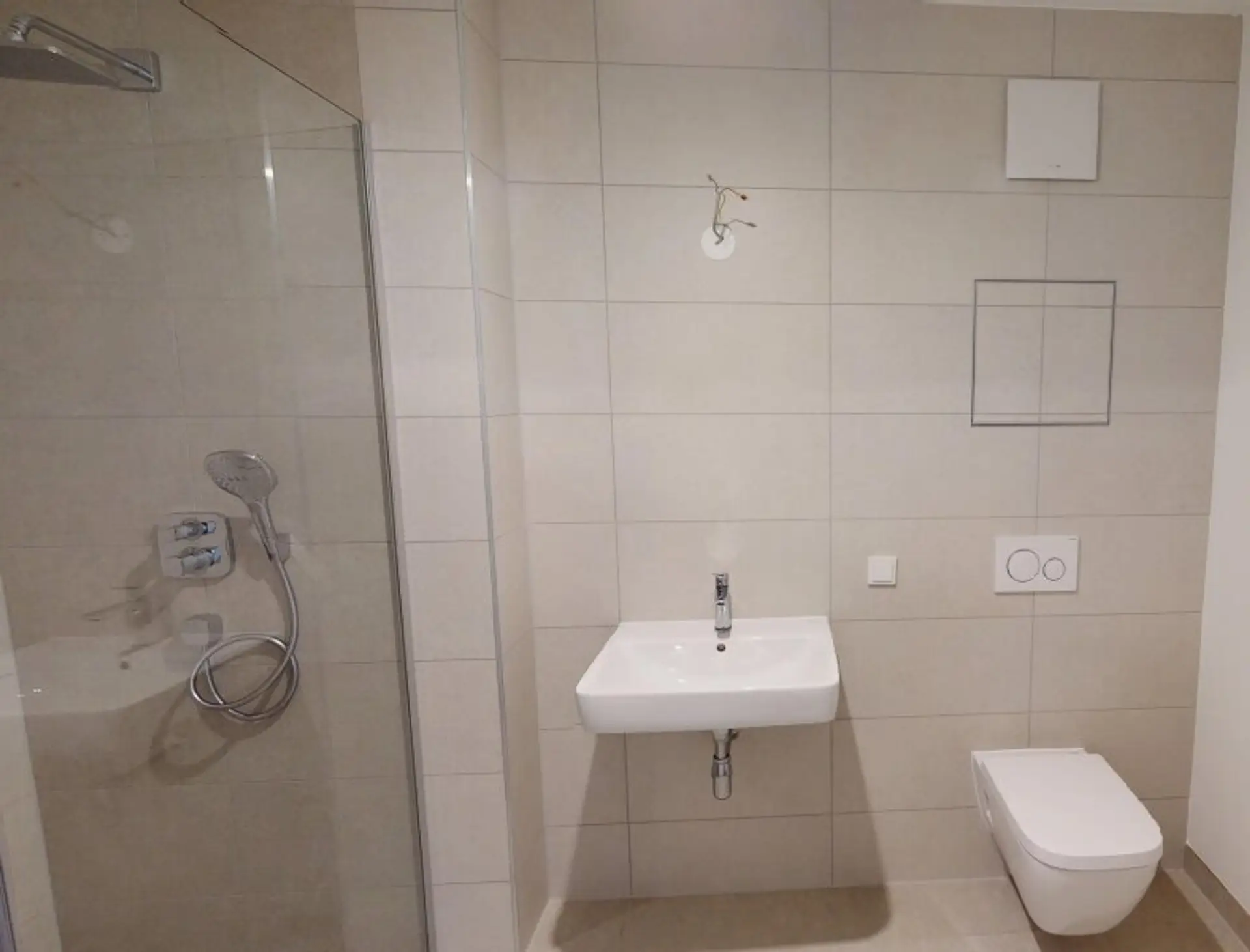 Das Badezimmer ist ein weiteres Highlight dieser Wohnung. Es ist mit einer walk-in Dusche ausgestattet.