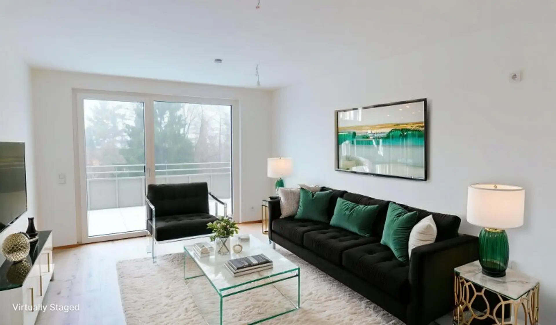 Der Wohnbereich besticht durch hochwertige Parkettböden und eine angenehme Fußbodenheizung, die für wohlige Wärme sorgt. Von hier aus gelangen Sie auf den einladenden Balkon, der sich perfekt für entspannte Stunden im Freien eignet – sei es zum Frühstück mit Blick ins Grüne oder zum Ausklang des Tages.