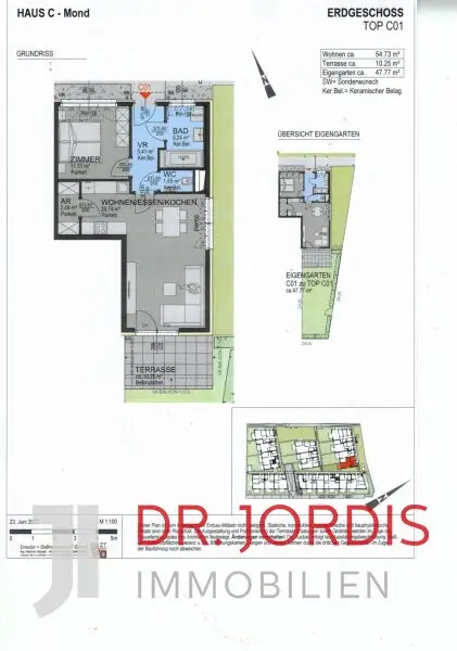 Geniessen Sie das ländliche Leben und gleichzeitig die Dorfidylle: Eine bezugsfertige Gartenwohnung, in zweiter Reihe einer Wohnhausanlage mit 55 Eigentumswohnungen. Die Wohnung liegt völlig ruhig im zweiten Haus und hat eine südseitige Orientierung. Der 47,77 m² große Garten mit 10,25 m² Terrasse, ist ebenerdig zu erreichen. Diese Wohnhausanlage verfügt über Kabel/Sat TV, Postpaket-Box, versperrbare Fahrrad-Abstellräume und die E-Mobilität mit E-Ladestation ist eingerichtet. Die Beheizung findet über eine Luft-Wasserwärmepumpe in Kombination mit einer Gasheizung statt. An der Eingangstüre können Sie auf Sonderwunsch eine Videoeinheit über die bereits installierte Kamera erhalten.