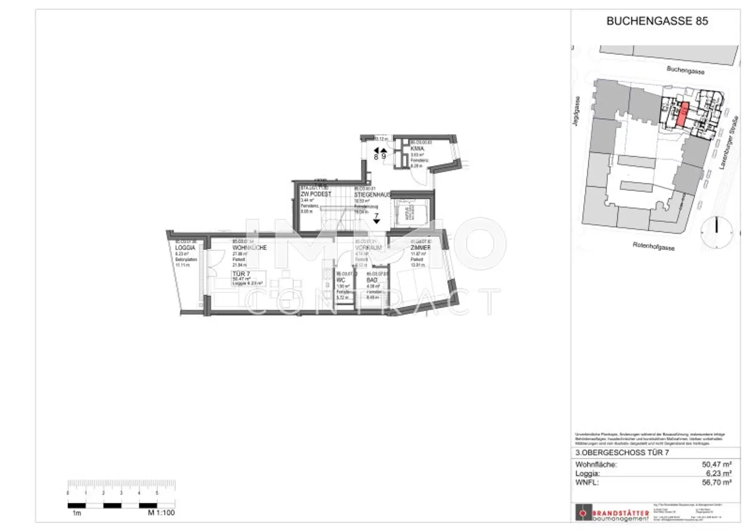 Die Wohnung liegt in der Buchengasse 85 mit guter Infrastruktur und Verkehrsverbindungen., gleich um die Ecke vom Quellenplatz mit mehreren Straßenbahnenlinien (6, 11 und O ) und etwa 5 min fußläufig zur U1 Reumannplatz
