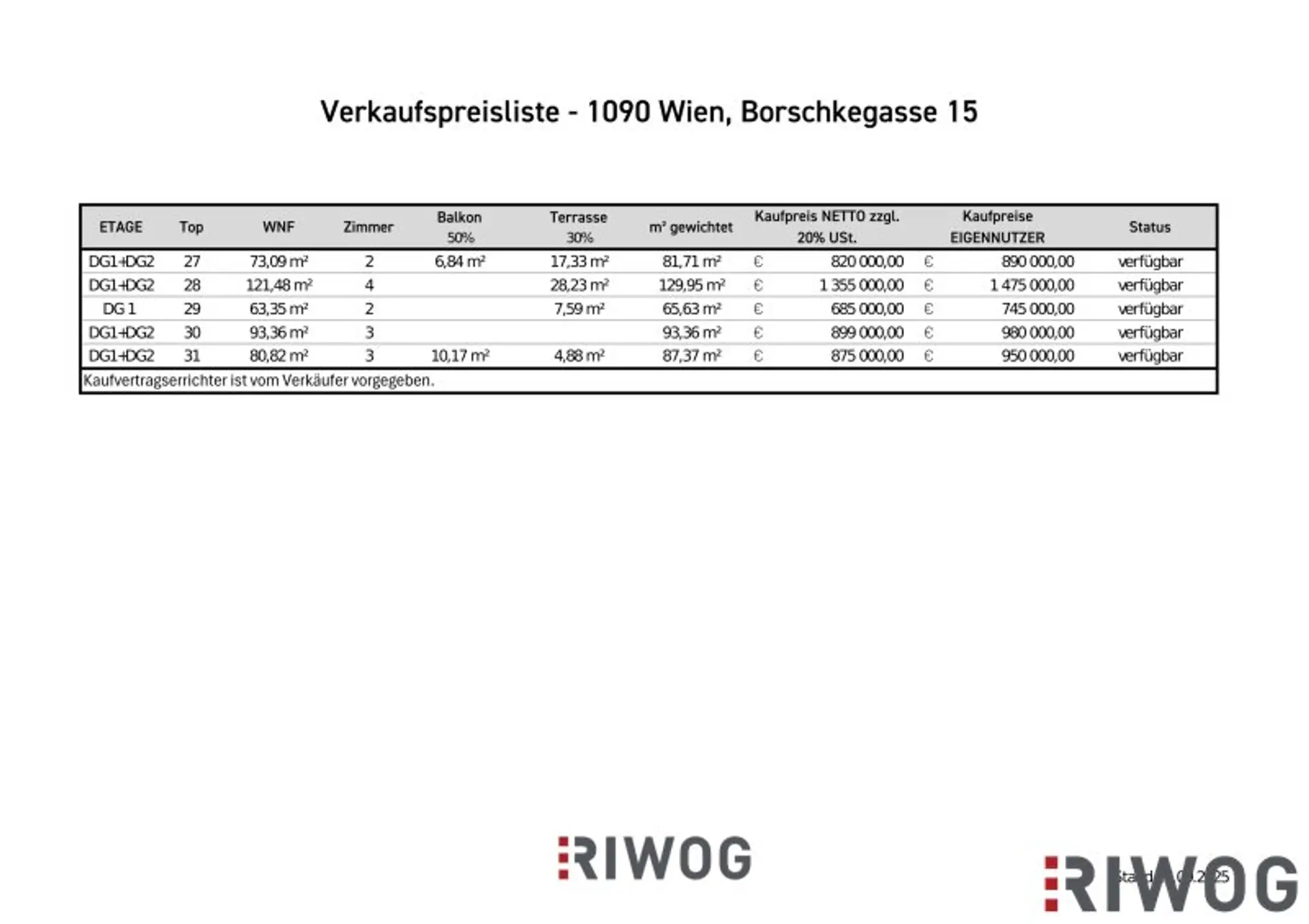Kaufpreise als Anleger NETTO von € 600.000,- bis € 1.249.000,- zzgl. 20% USt.