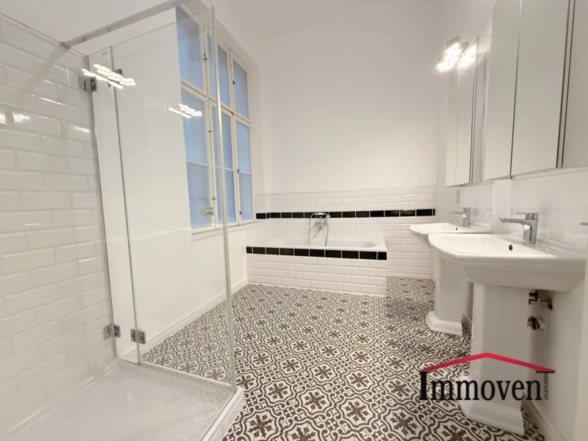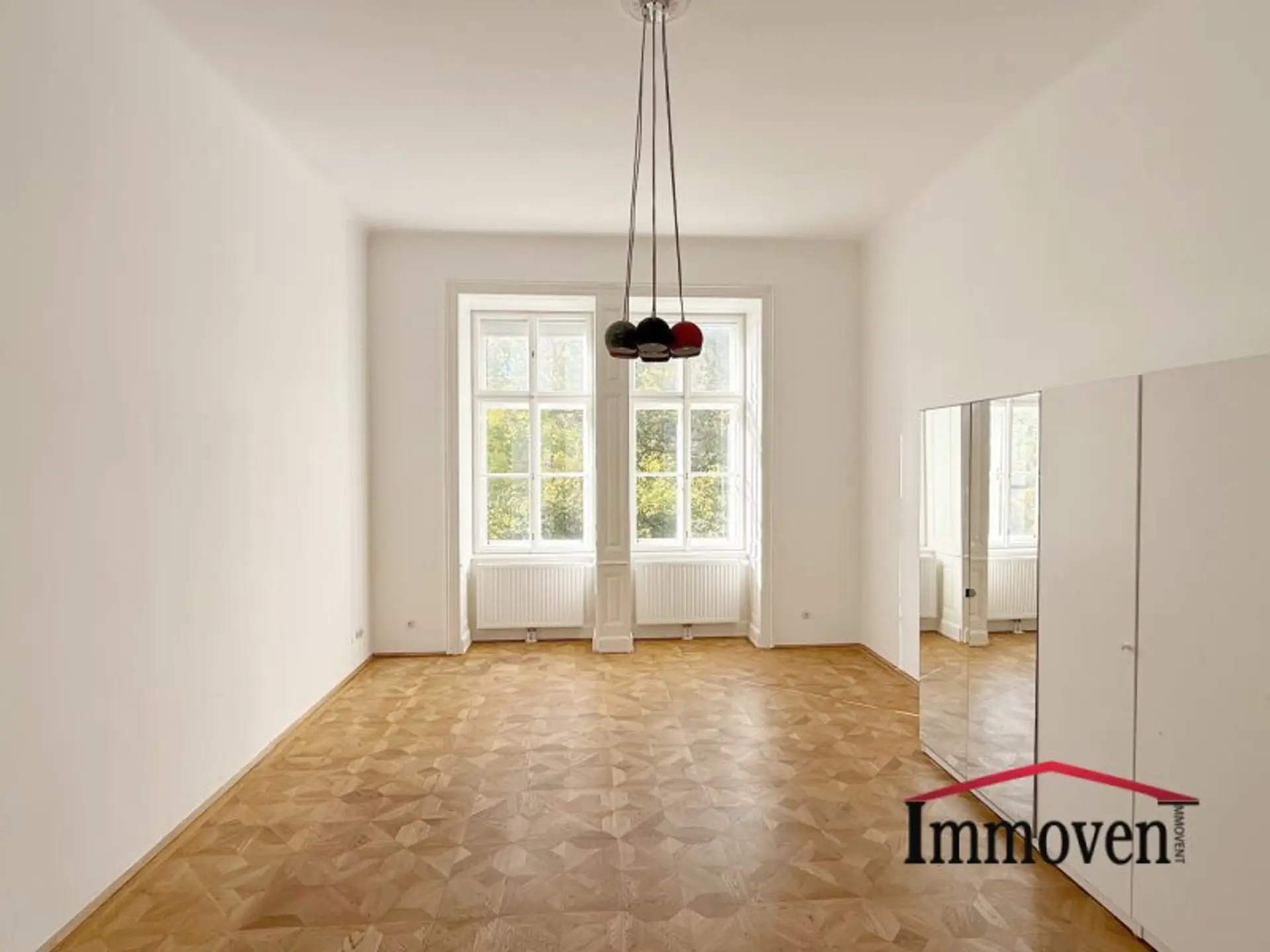 In den repräsentativen Zimmern befinden sich schöne klassische Sternparkett-Böden. Die hohen Decken und die großen Fenster ergänzen die wunderschöne Atmosphäre. Die Küche ist modern ausgestattet und bietet ausreichend Platz. Die sanitären Einrichtungen sind elegant eingerichtet. Ein Bad ist ein en-suite-Badezimmer. Im Abstell- bzw. Wirtschaftsraum steht Ihnen genügend Stauraum zur Verfügung. Beheizt wird dieses elegante Objekt mit einer Gasetagenheizung.