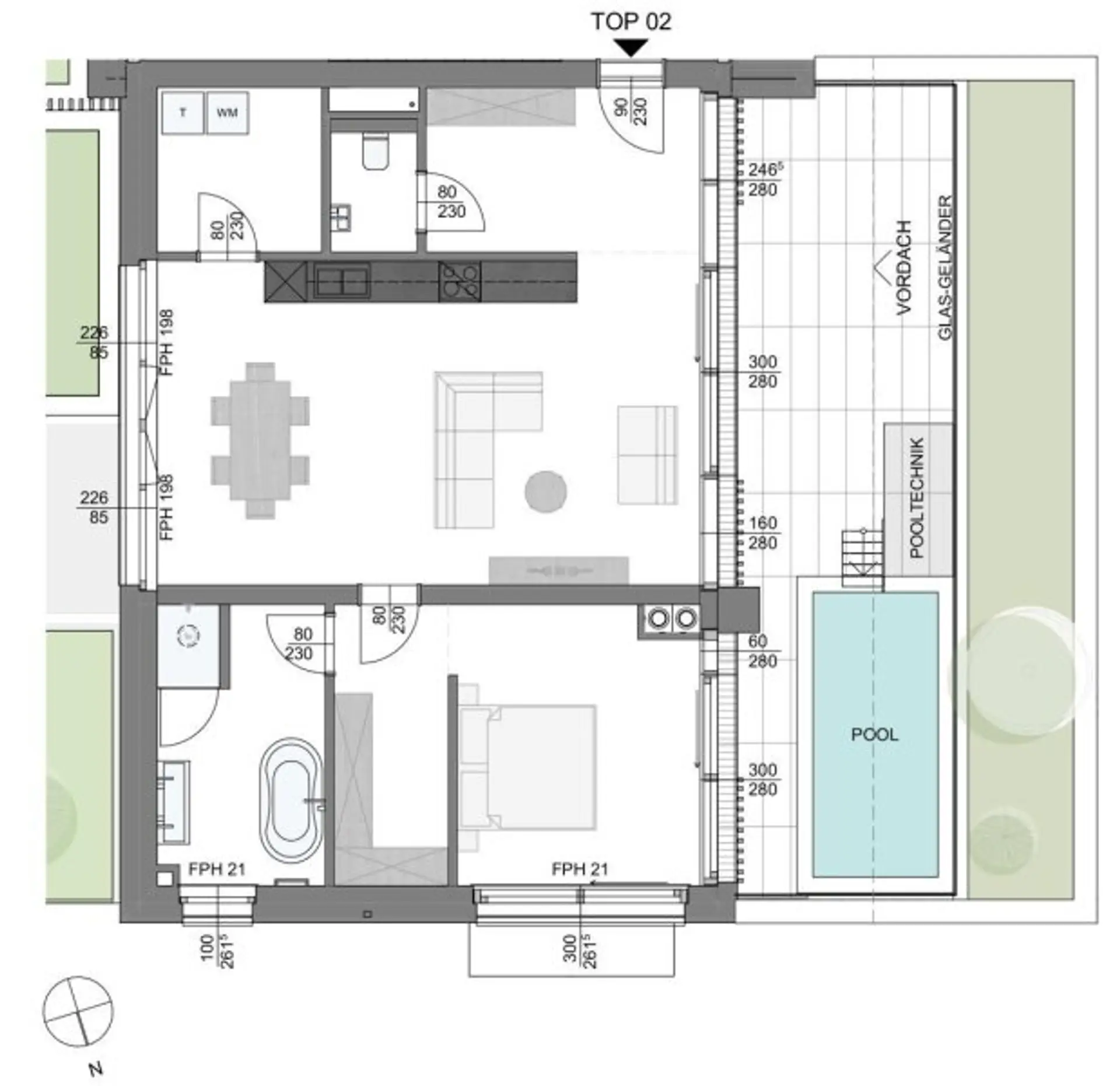 Für nachhaltigen Komfort sorgt eine zentrale Sole-Wasser-Wärmepumpe, die Heizung, Kühlung und Warmwasser effizient in einem System bündelt. So wird modernes Wohnen mit ökologischem Bewusstsein harmonisch verbunden.