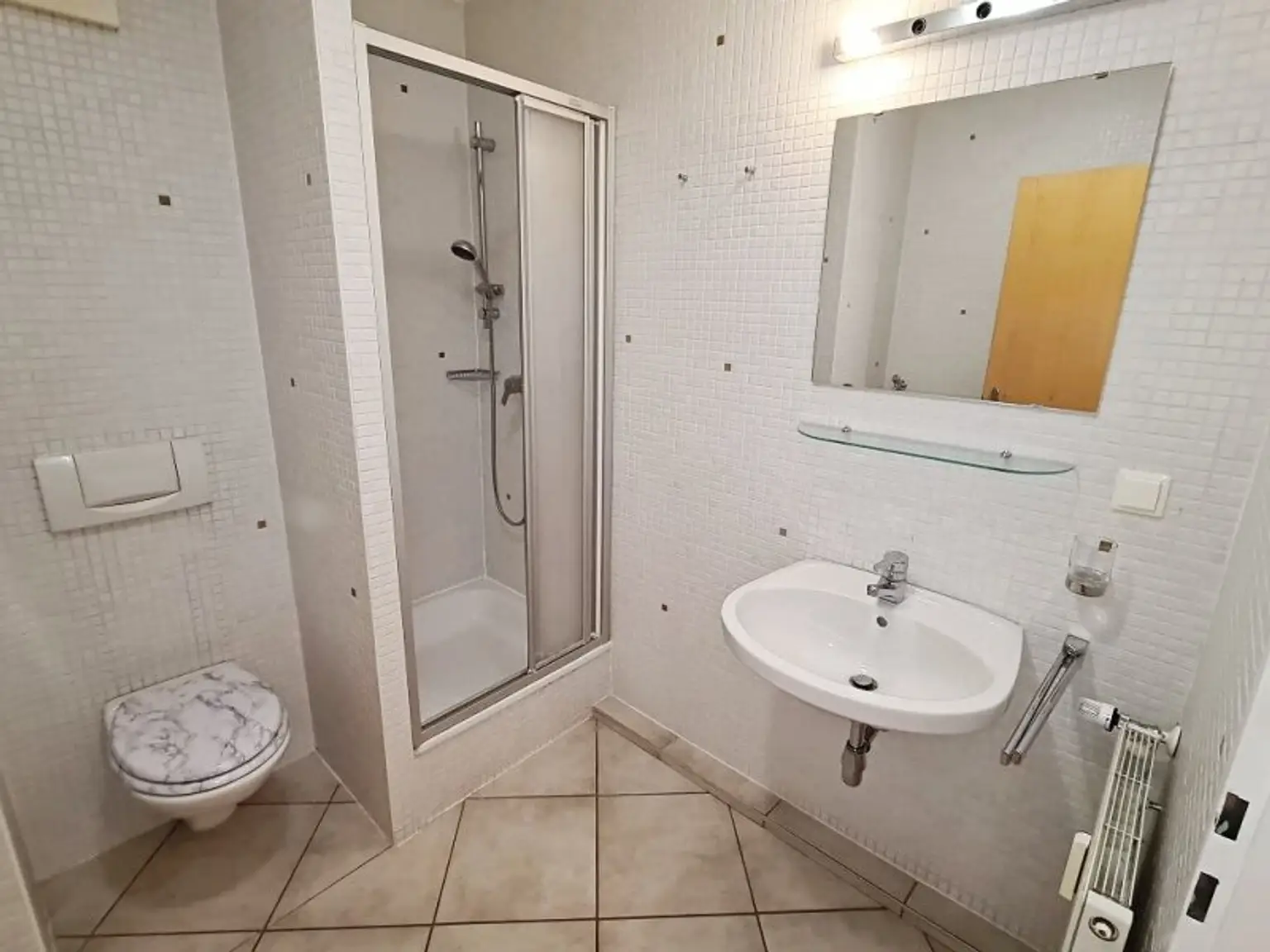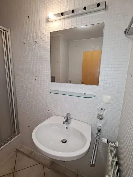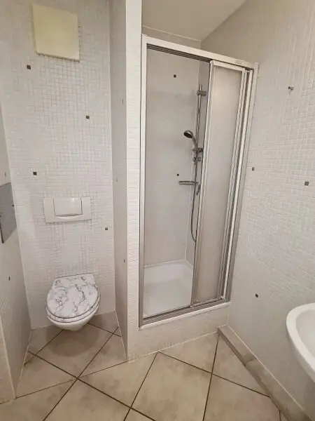 + BADEZIMMER MIT DUSCHE, WASCHTISCH, WC UND WASCHMASCHINENANSCHLUSS