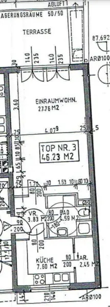 VORZIMMER, EINZELWOHNRAUM, EXTRAKÜCHE, TERRASSE, BADEZIMMER MIT WC, ABSTELLRAUM UND KELLERABTEIL