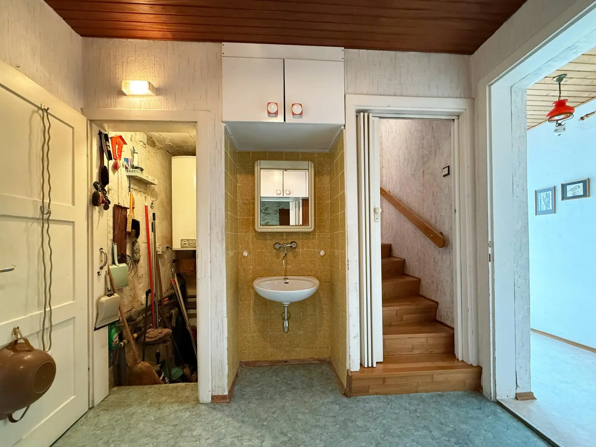 Gelegen an der zentralen aber überschaubar befahrenen Hauptstrasse, verfügt das repräsentative Anwesen über ein Haupthaus mit ausreichend Räumen im EG und dem Dachgeschoß, einen Anbau / Schuppen der nebst Keller viel Platz zum Einlagern bietet - unter anderem Werkstatt und Fahrradabstellraum - wie auch eine in den 70er gebaute Garage, die auch den heute deutlich größeren Fahrzeugen, Platz bietet.