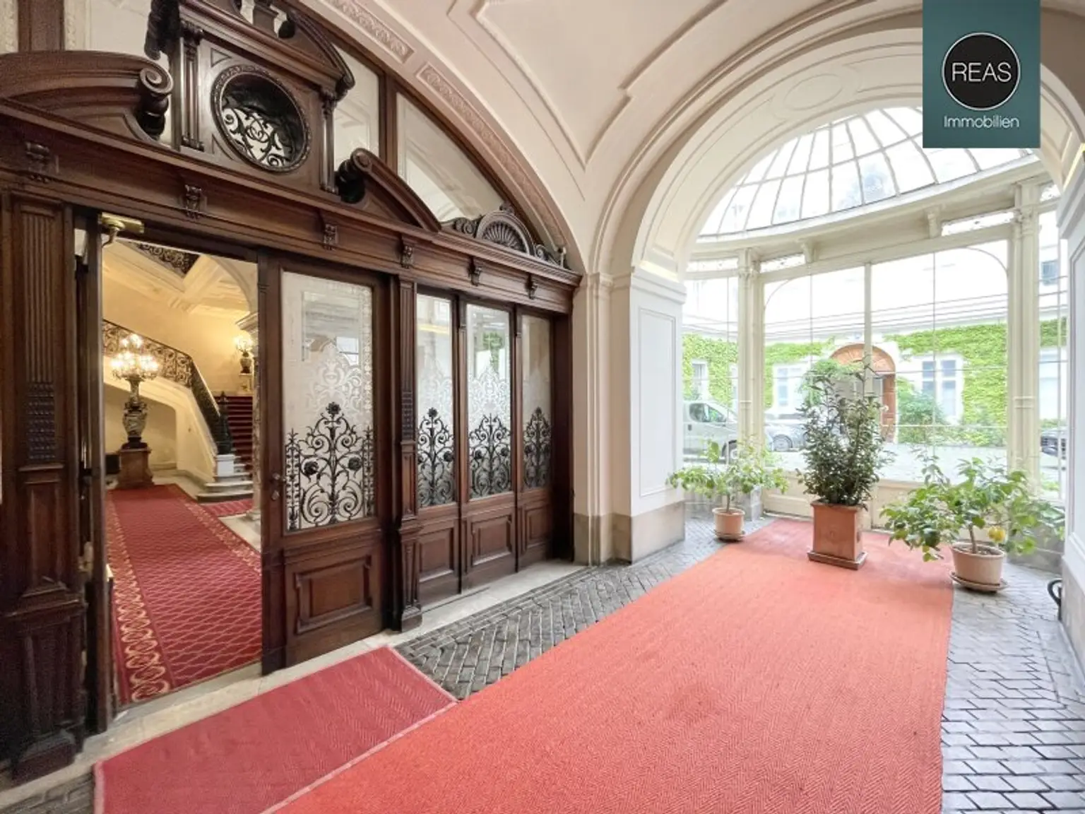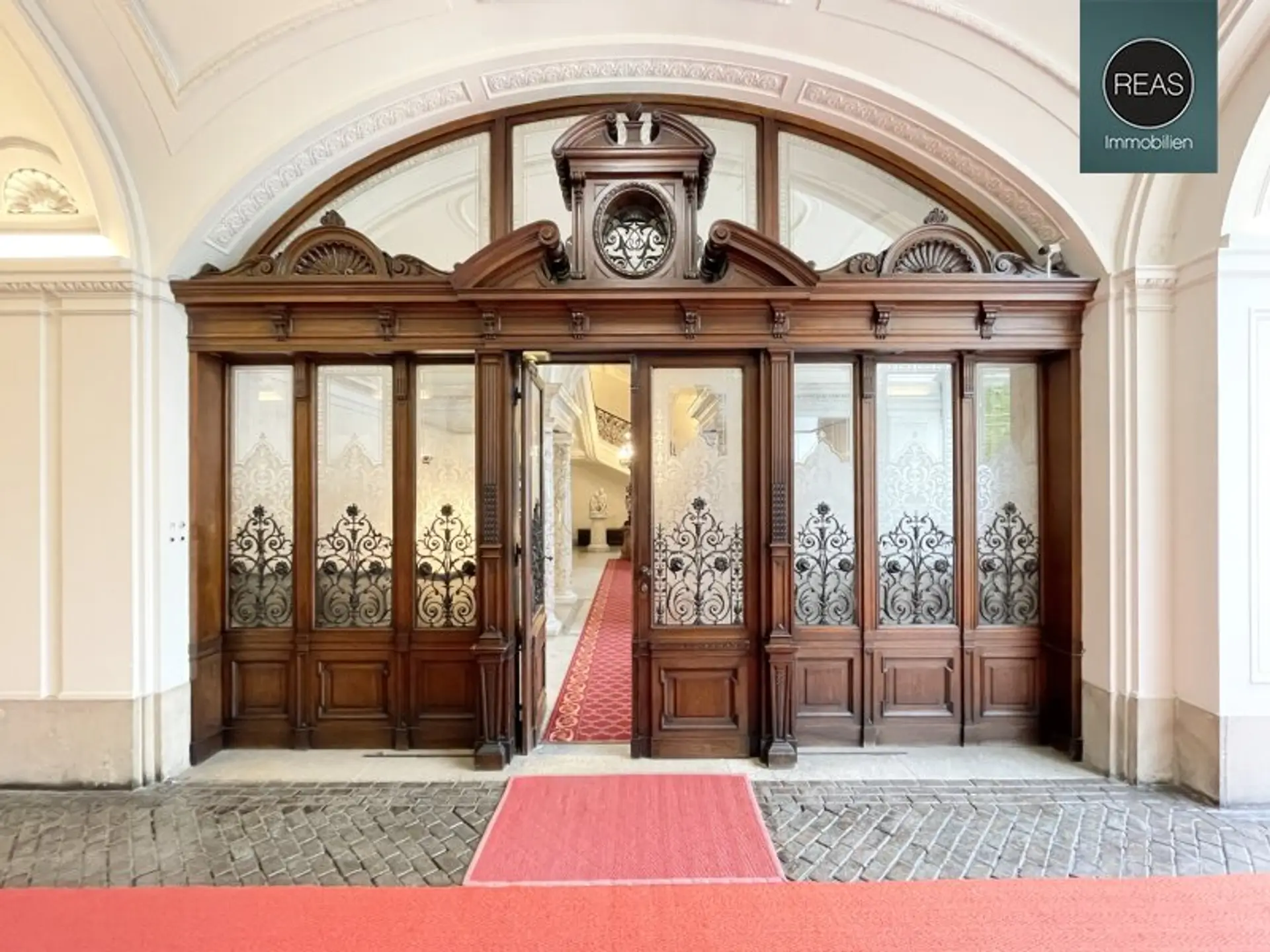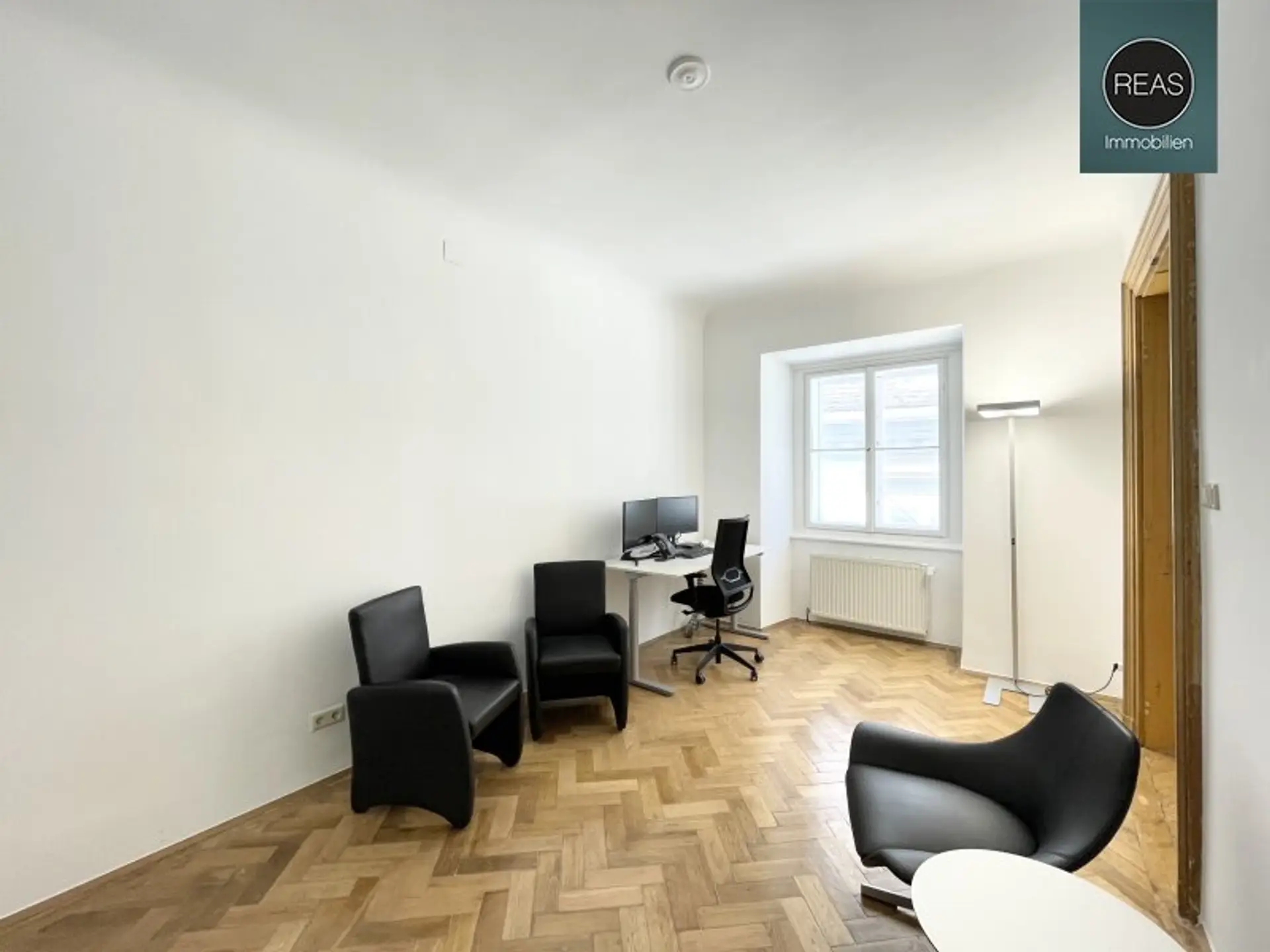 Das Büro ist über 2 repräsentative Hauseingänge (1x mit Lift) erreichbar. Zur hochwertigen Ausstattung gehören Echtholz Parkettböden, eine voll ausgestattete Einbauküche sowie Flügeltüren.