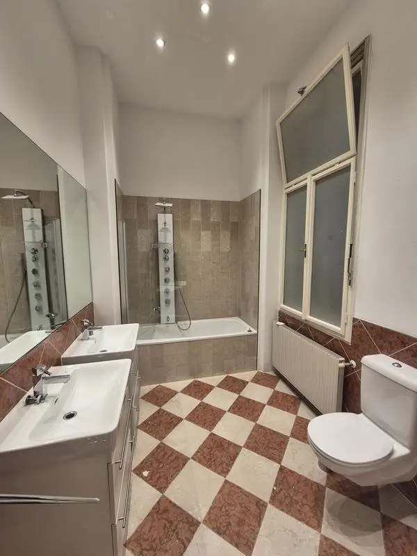 Einbauküche mit Geräten, Flügeltüren, Eichenparketten, Nassräume verfliest