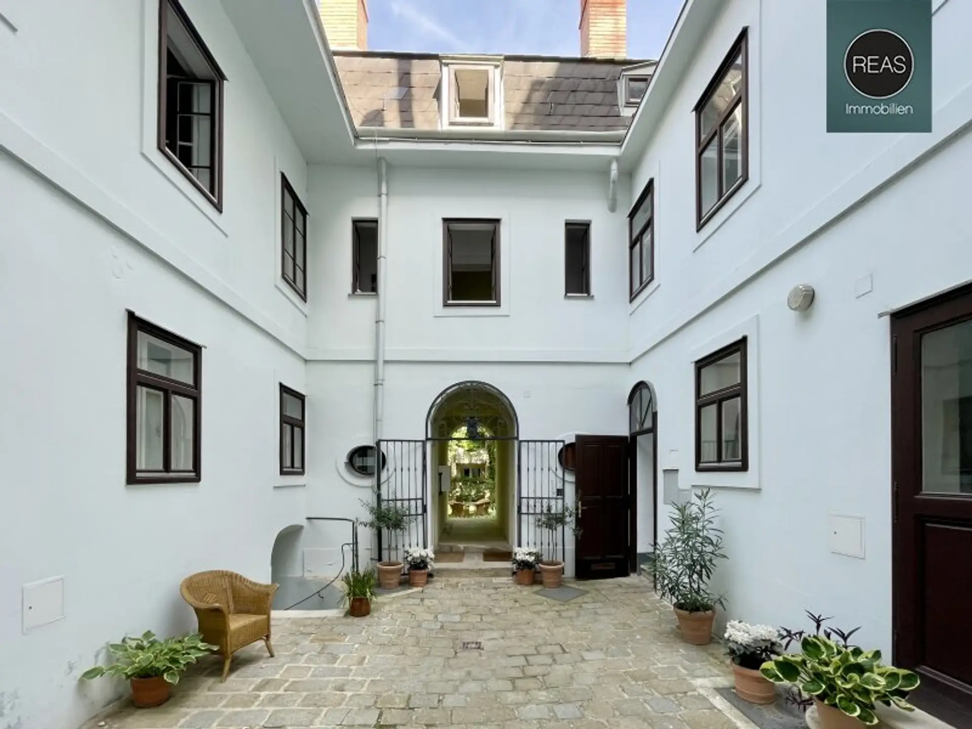 Die sehr hochwertige Immobilie befindet sich im 1. Stock (ohne Lift) in absoluter Ruhelage mit Blick auf den Garten und den Innenhof und besteht aus: