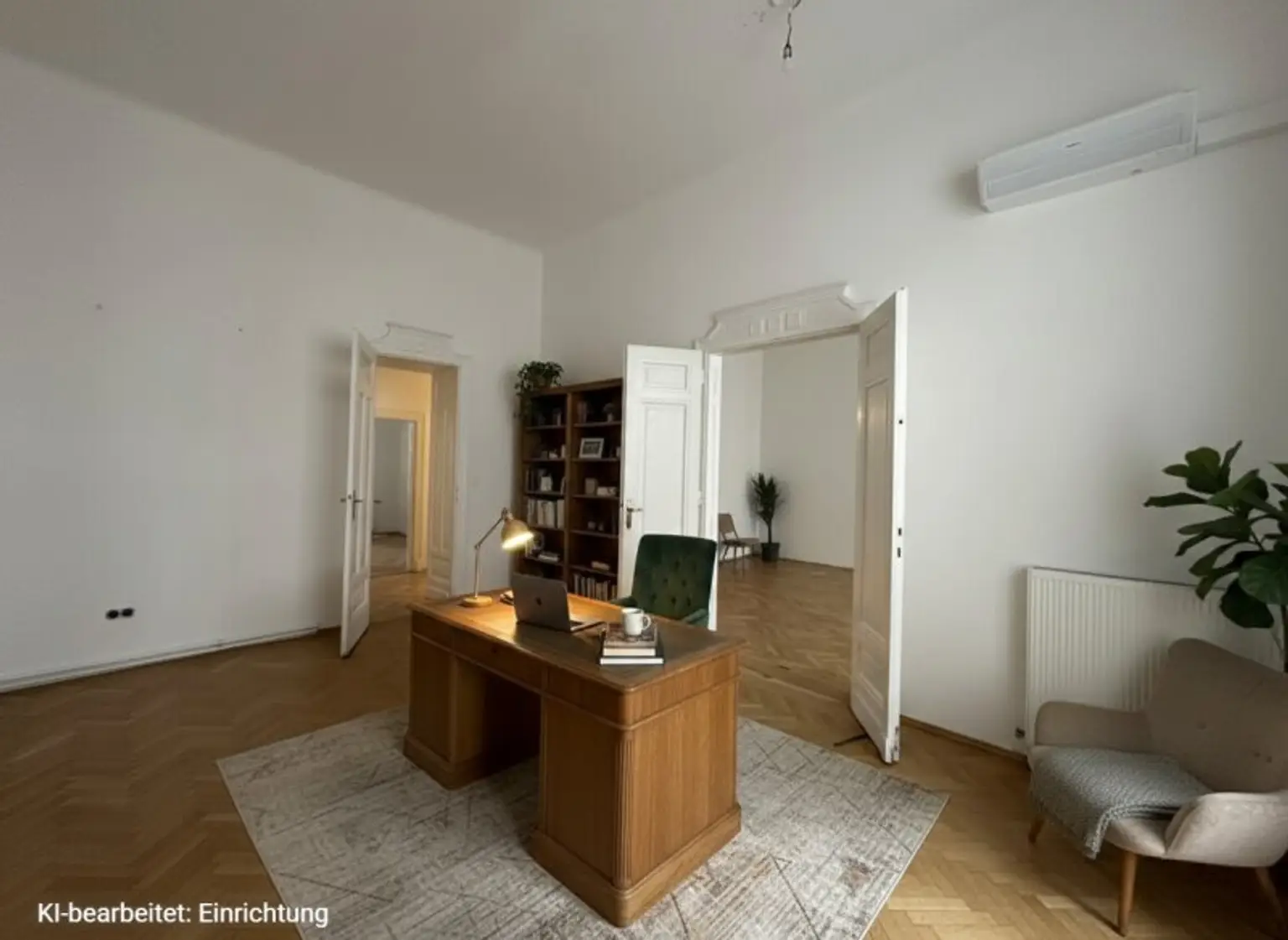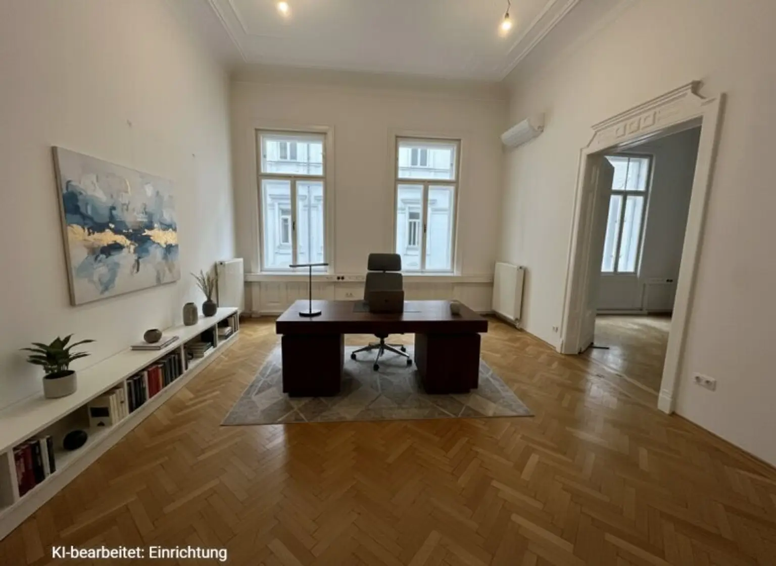 Zur Vermietung steht ein großzügiges Büro mit insgesamt 165 m2 Nutzfläche im 1. Obergeschoss, das allein oder auch durch die mögliche Zusammenlegung einer weiteren, danebenliegenden Einheiten besonders viel Platz und Flexibilität bietet.