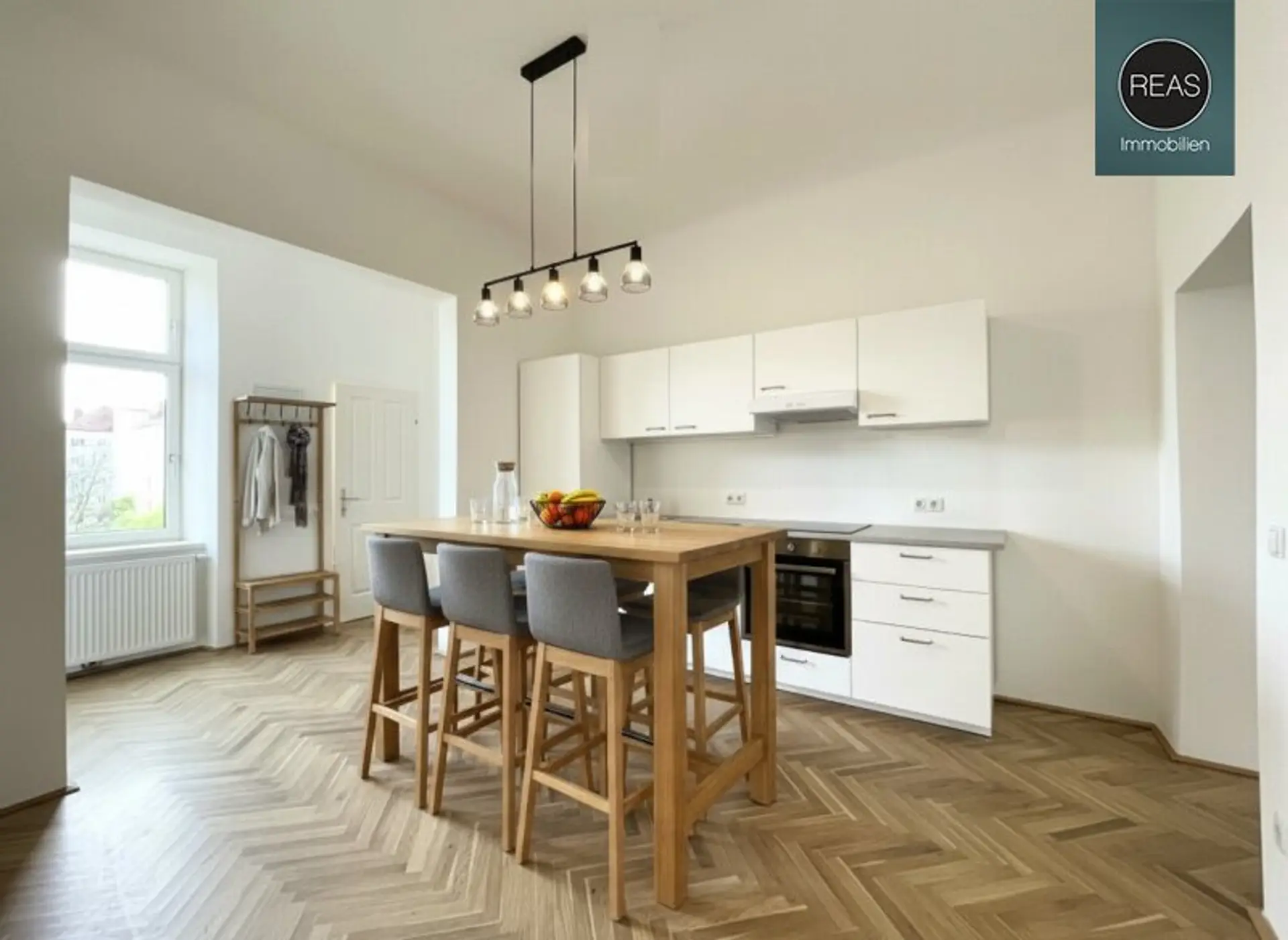 Zur hochwertigen Ausstattung gehören: Echtholz-Parkettböden, Thermo-Fenster, Einbauküche mit allen Geräten, uvm.