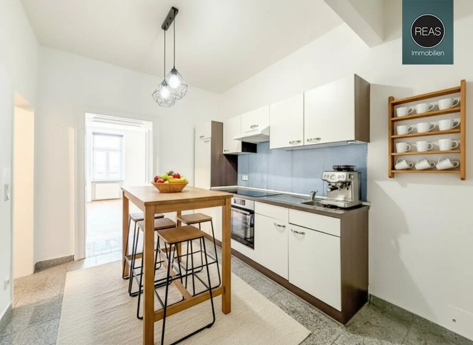* 1 Vorraum/Küche mit Einbauküche inkl. Geräte (Backofen, Herd, Kühlschrank, Dunstabzug)