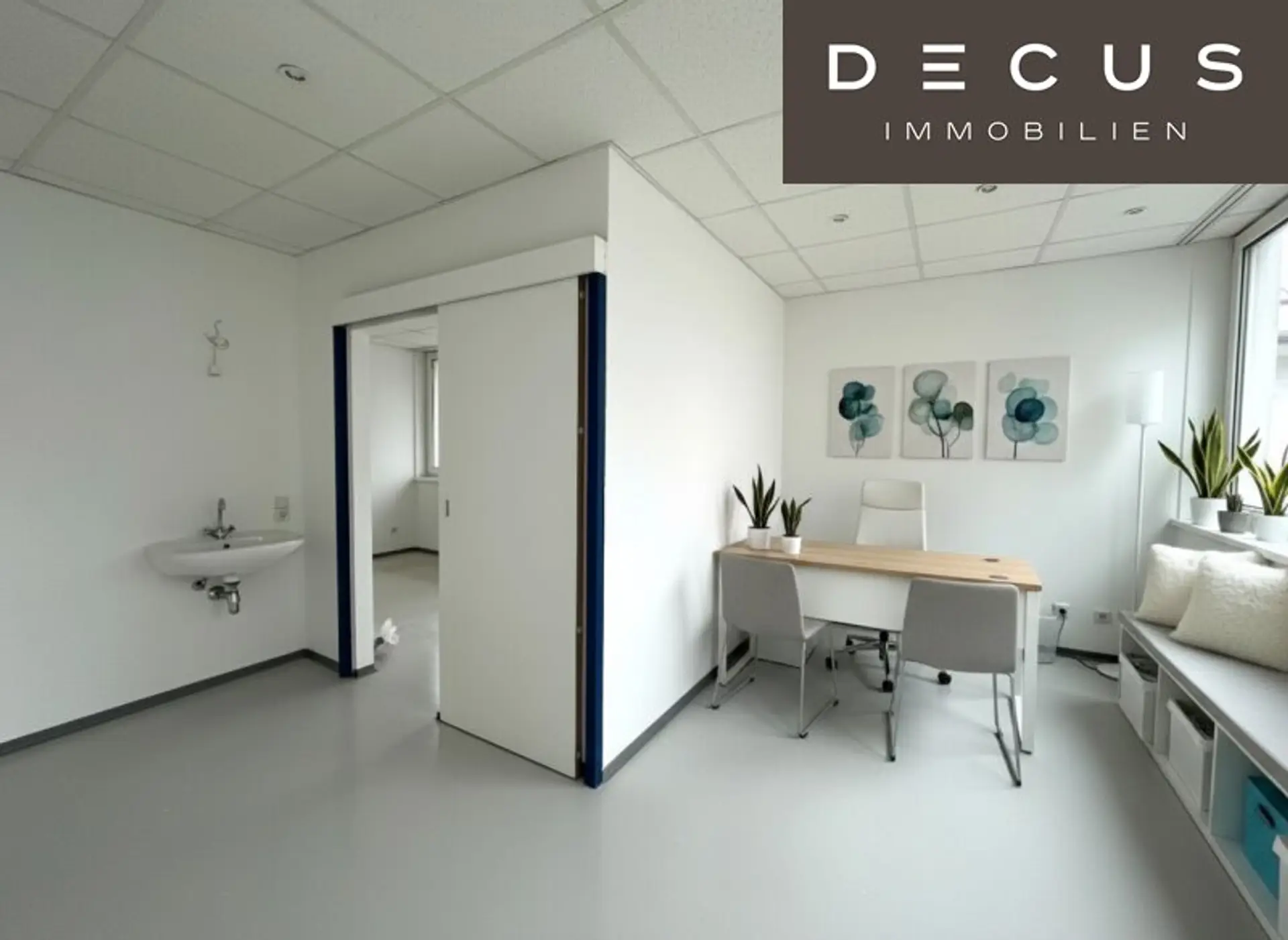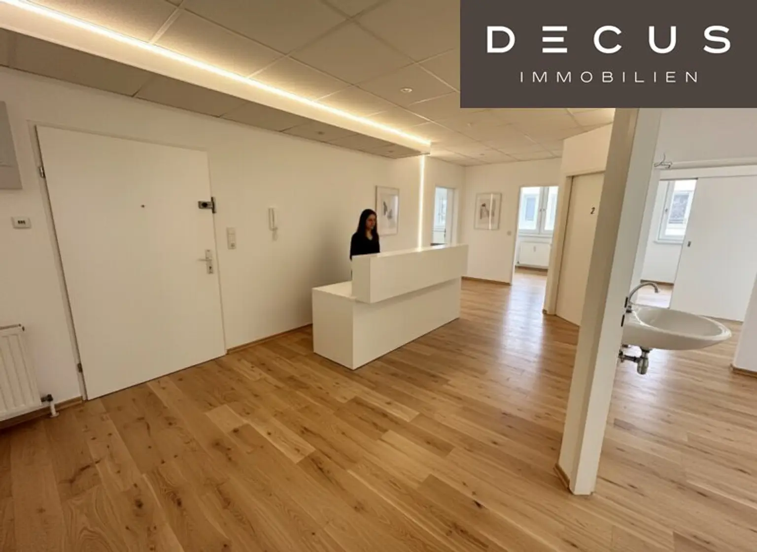 Die ca. 98 m² Fläche wurde vormals als orthopädische Ordination genutzt und bietet zentral begehbare, helle Räume im 1. Obergeschoss.
