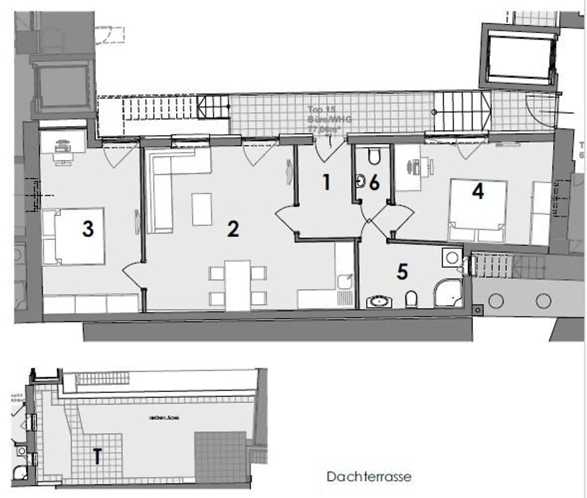 Über eine außen liegende Treppe ist eine 10,51m² große Terrasse erreichbar.