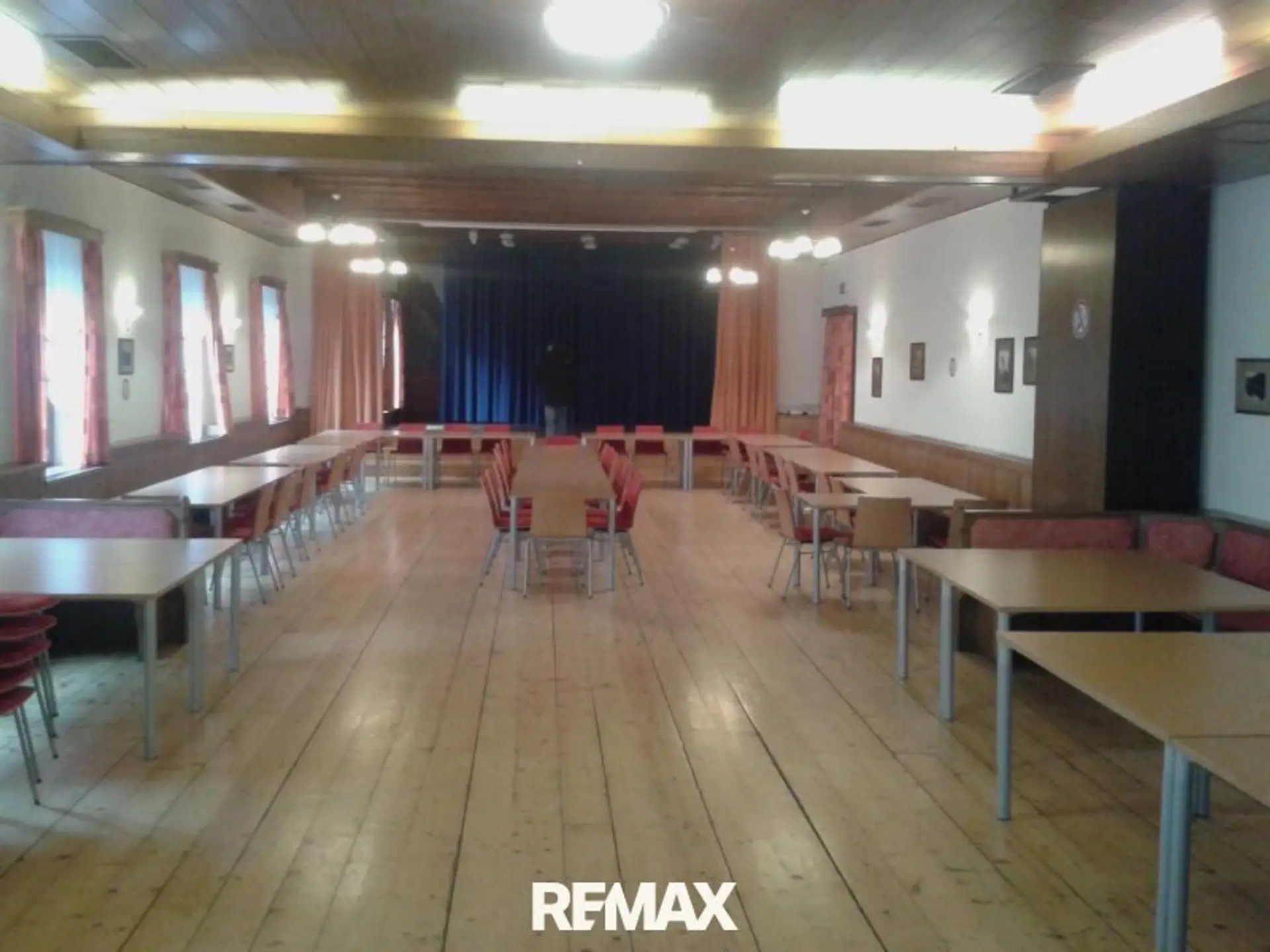 Vorraum, WC-Anlagen, Barrierefreies WC, Lager, Küche, Schankraum und Saal für max. 120 Personen, mit insgeamt ca. 307m² Nutzfläche.