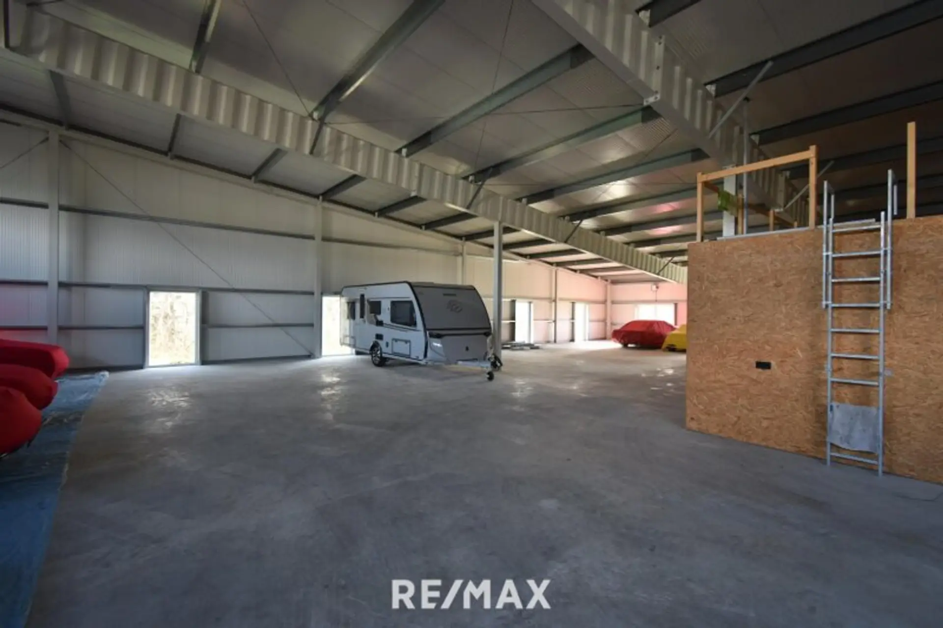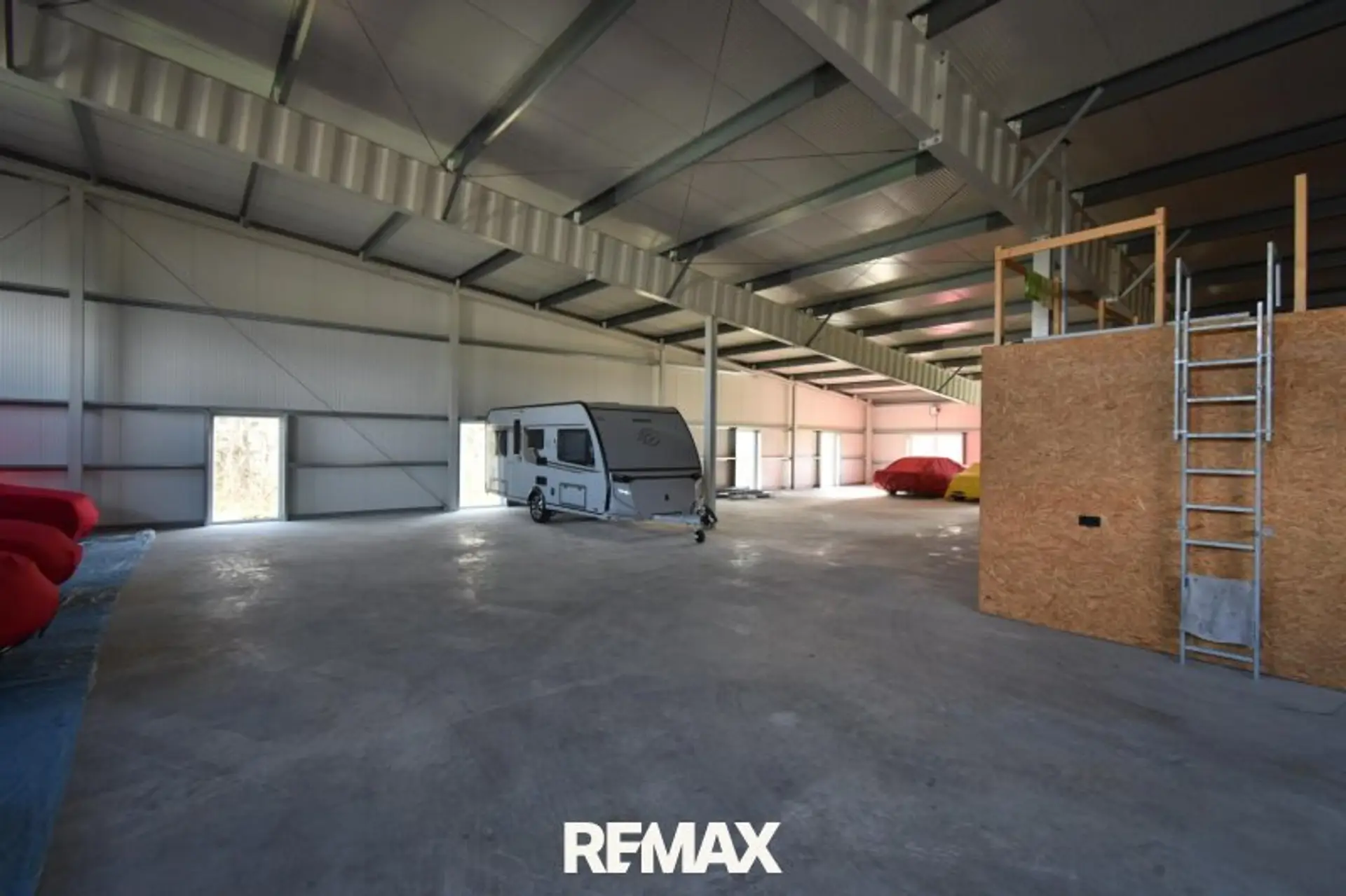 Die Hallenhöhe variiert zwischen ca. 3-6m und bietet auch noch Lagerplatz über dem Geschäftsraum.
