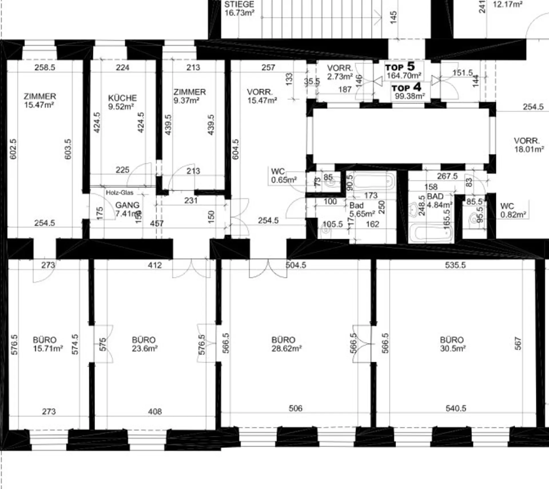 Flexible Raumaufteilung (derzeit bis zu 7 Zimmer)