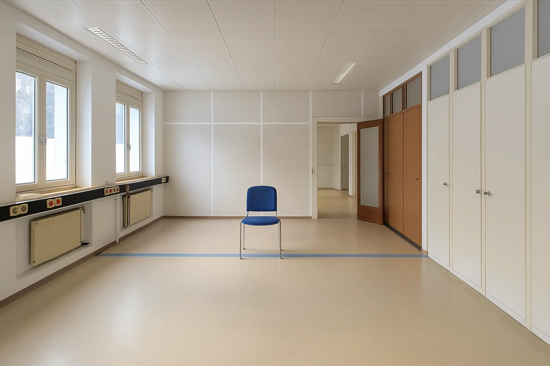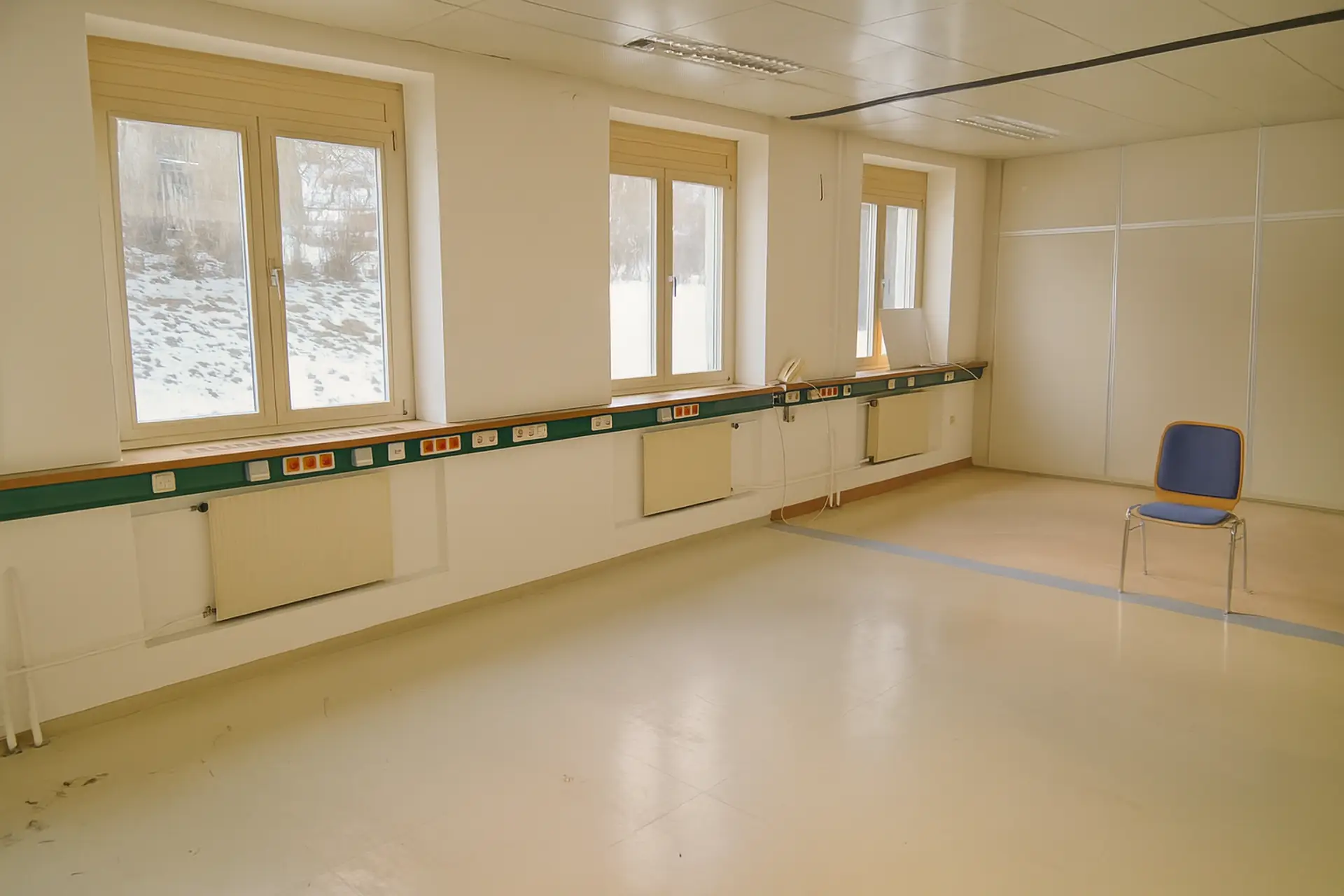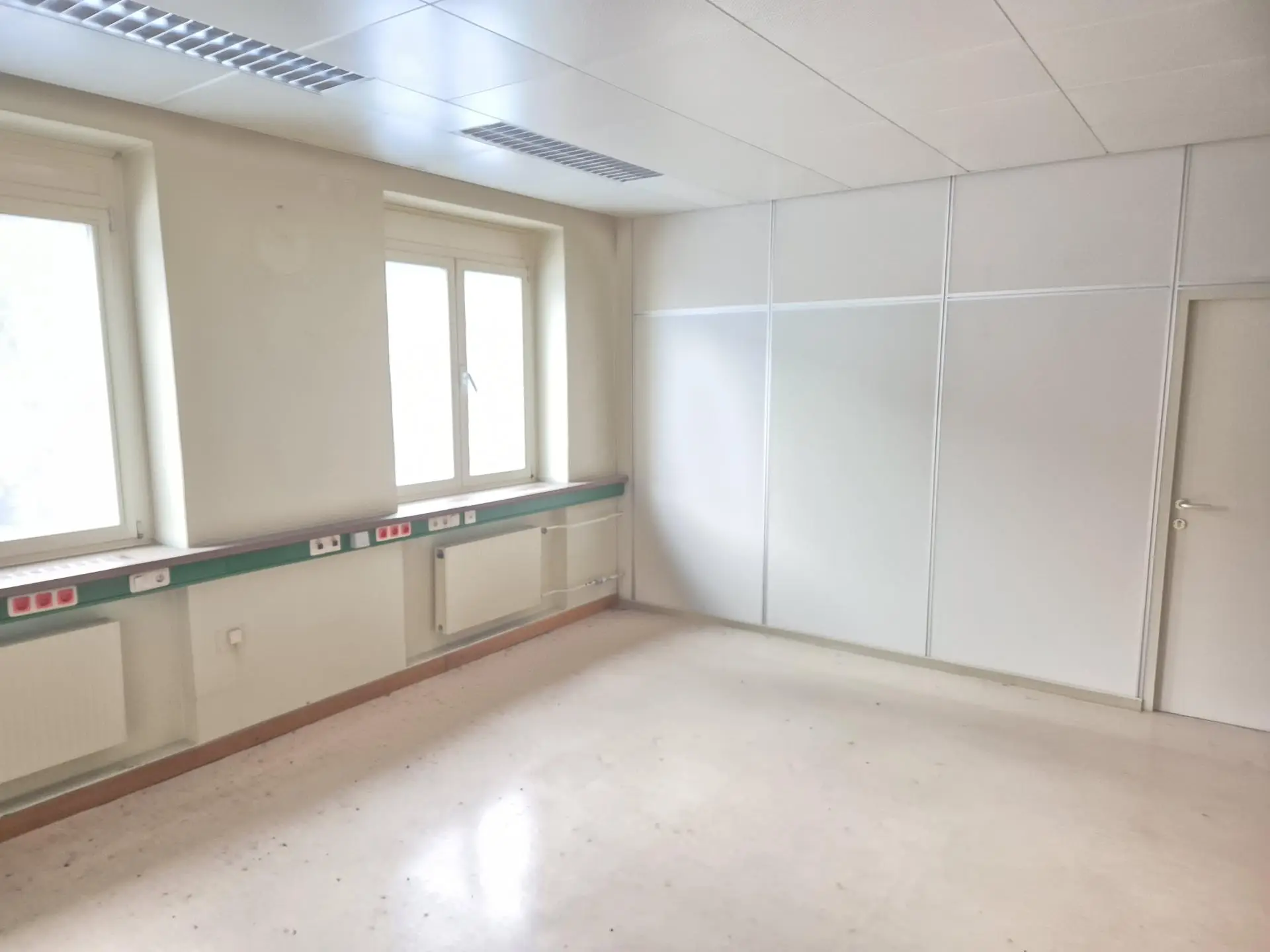 - Ausstattung: Linoleumboden, Kabelkanäle, Internet- und Telefonanschluss, Badezimmerfenster, Urinal/Pissoir vorhanden