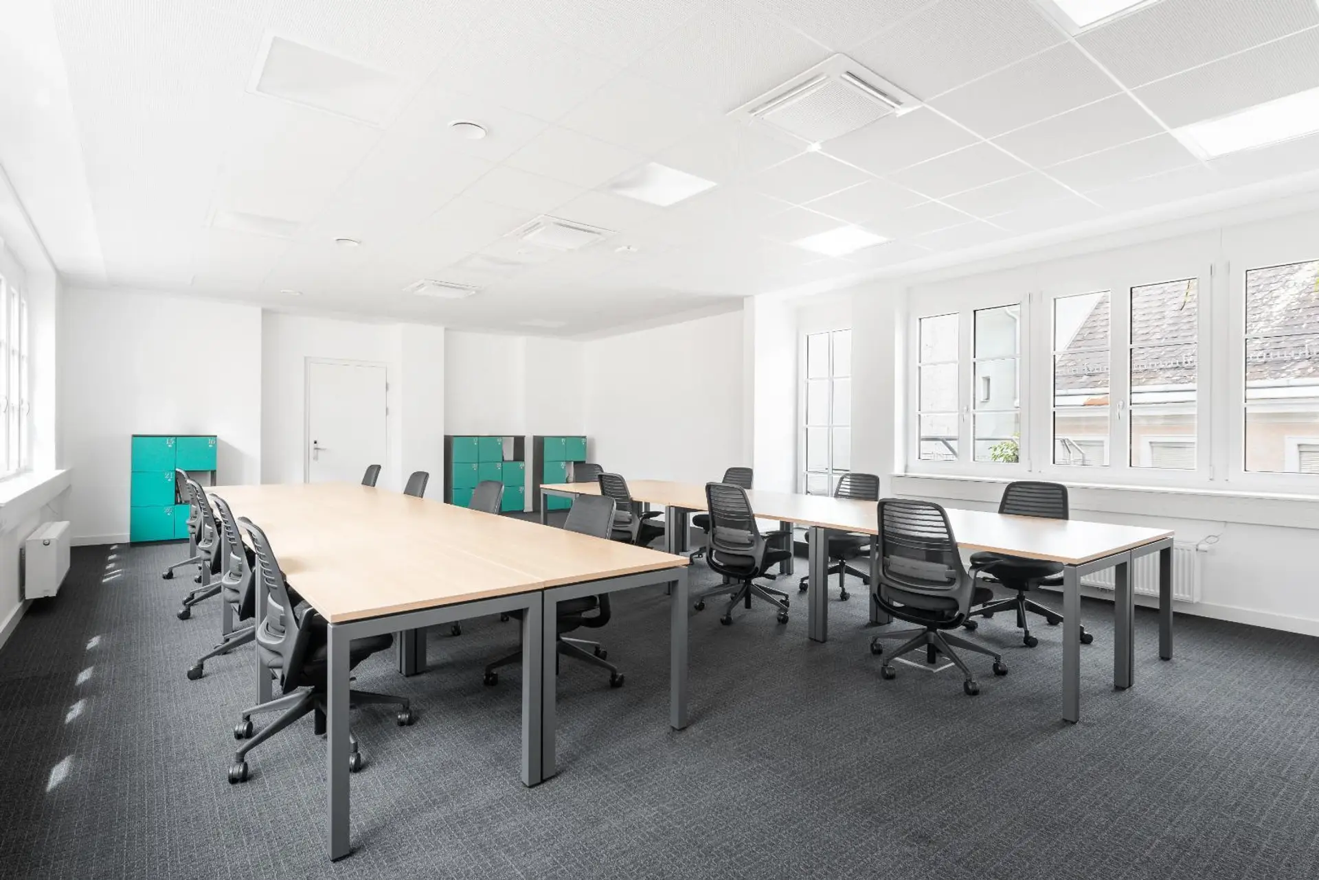 Jeder Büroraum ist modern ausgestattet und beinhaltet Schreibtisch(e), Bürostühle, Aktenschränke, Telefon, Internet und Klimaanlage.