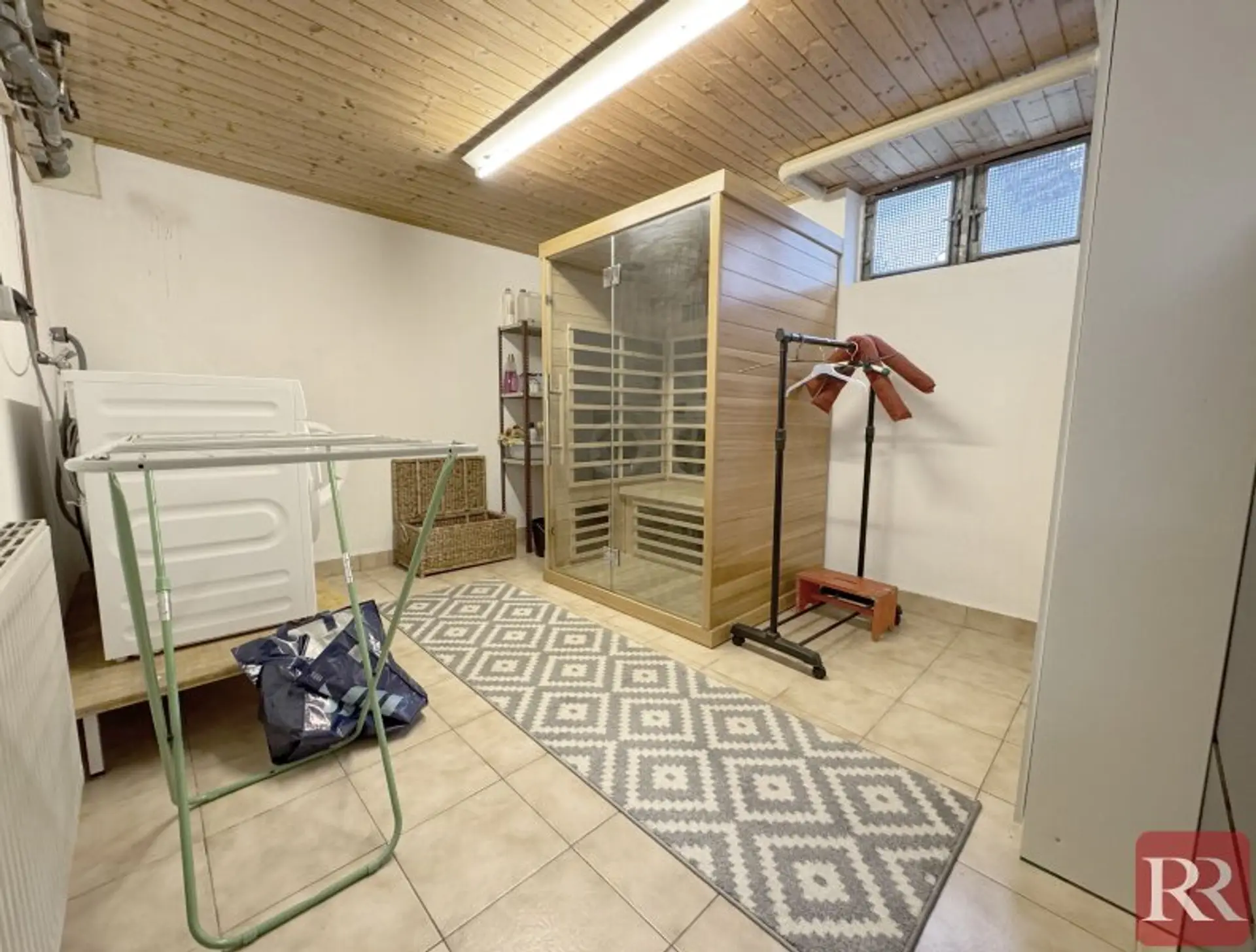 Der Keller umfasst ca. 80 m² und bietet neben einem Hobbyraum, einem Vorratsraum und dem Heizraum auch eine Infrarotkabine – ideal zum Entspannen.