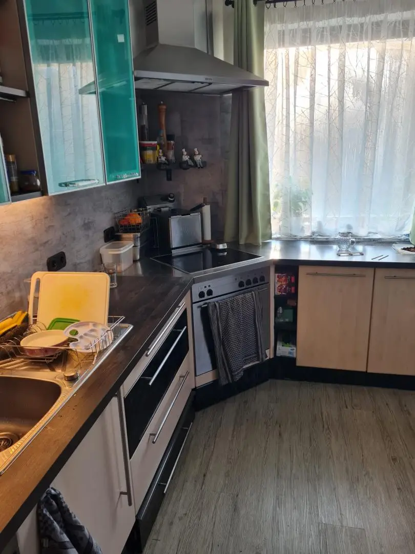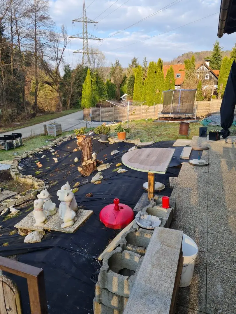 Im Erdgeschoss befinden sich eine Küche, ein Badezimmer mit Dusche und Badewanne, ein separates WC sowie drei Zimmer. Eine große Terrasse ergänzt das Raumangebot und bietet zusätzlichen Wohnkomfort im Außenbereich. Der Vollwärmeschutz wurde bereits teilweise angebracht.