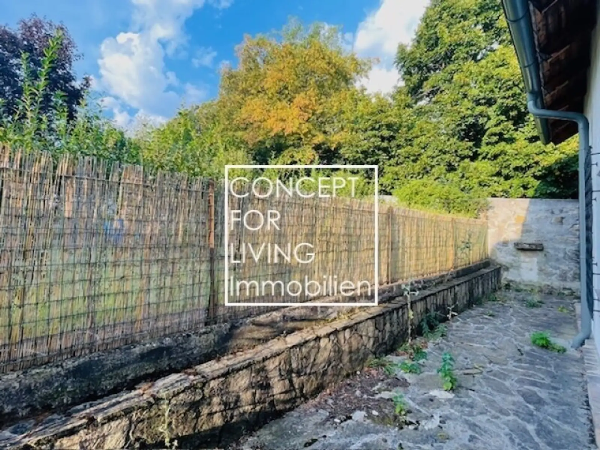 Das Haus liegt nahezu UNEINSEHBAR am oberen Teil des Grundstückes, derzeit über die Terrasse zu begehen.