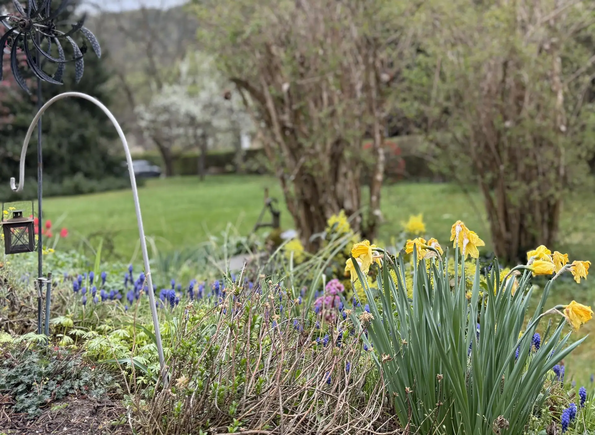Highlight ist aber fernab des Ausblicks vom Wohnzimmer auf die Terrasse natürlich der riesige Garten, der unglaublich viel Spielraum für Gestaltung zulässt, aber bereits toll von der Eigentümerin gepflegt und angelegt wurde - siehe Fotos und vor allem die Videos unter den "Links".