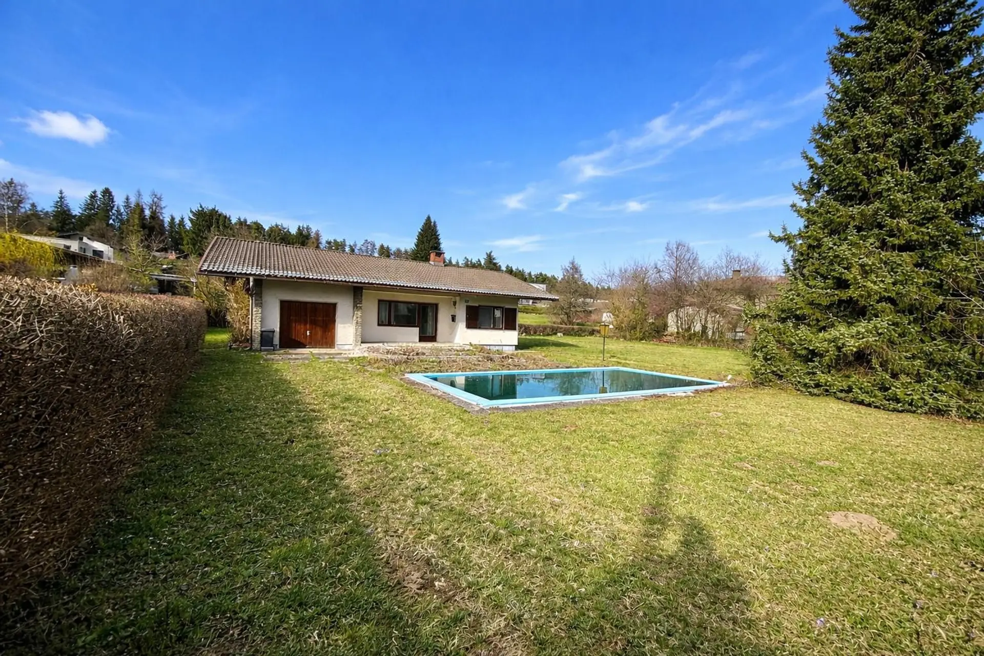 Wunderschön gelegenes zweiparzelliges Grundstück mit Bungalow, Pool und traumhafter Aussicht in Rosegg – Nähe Velden