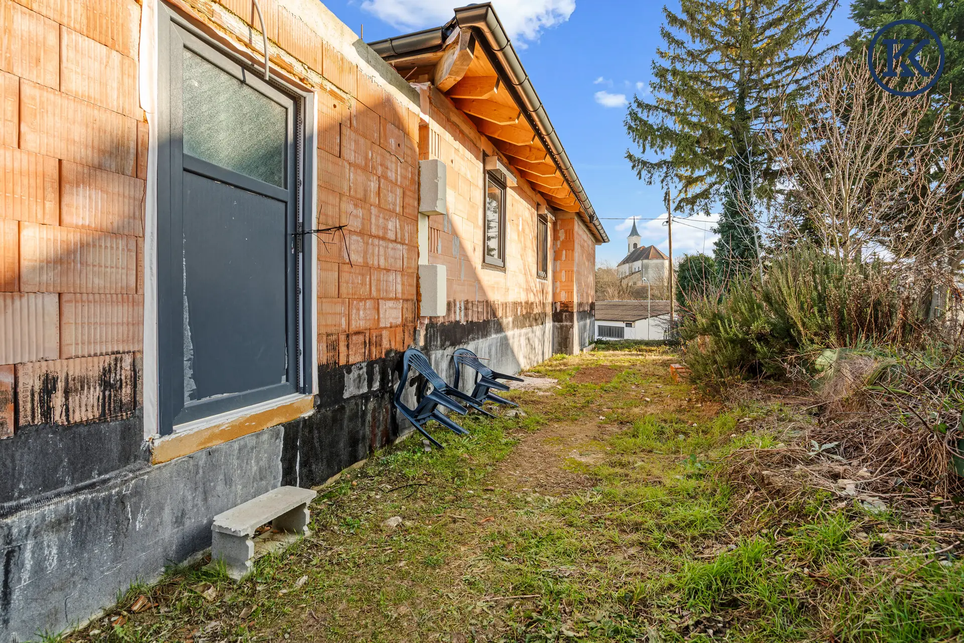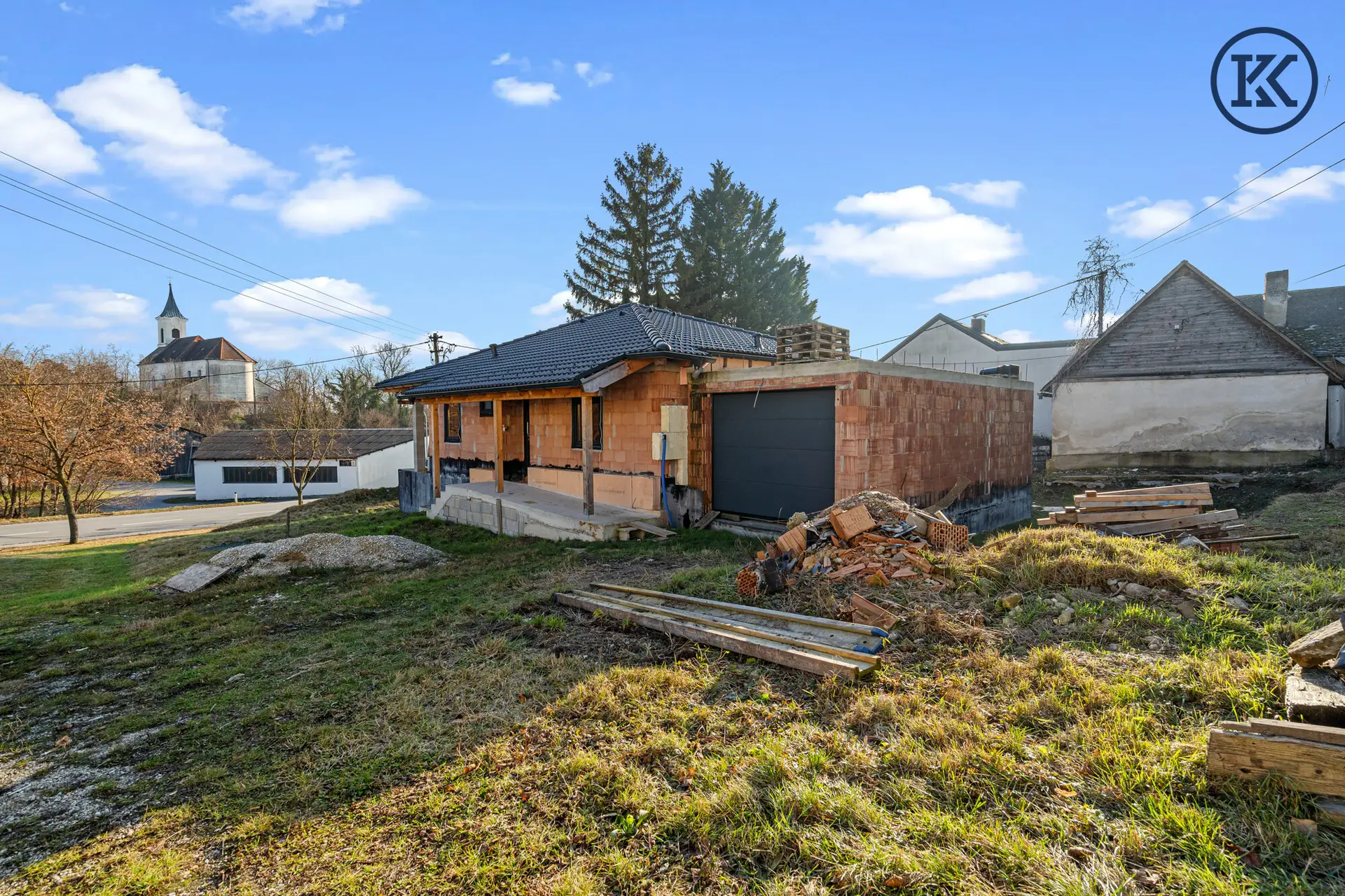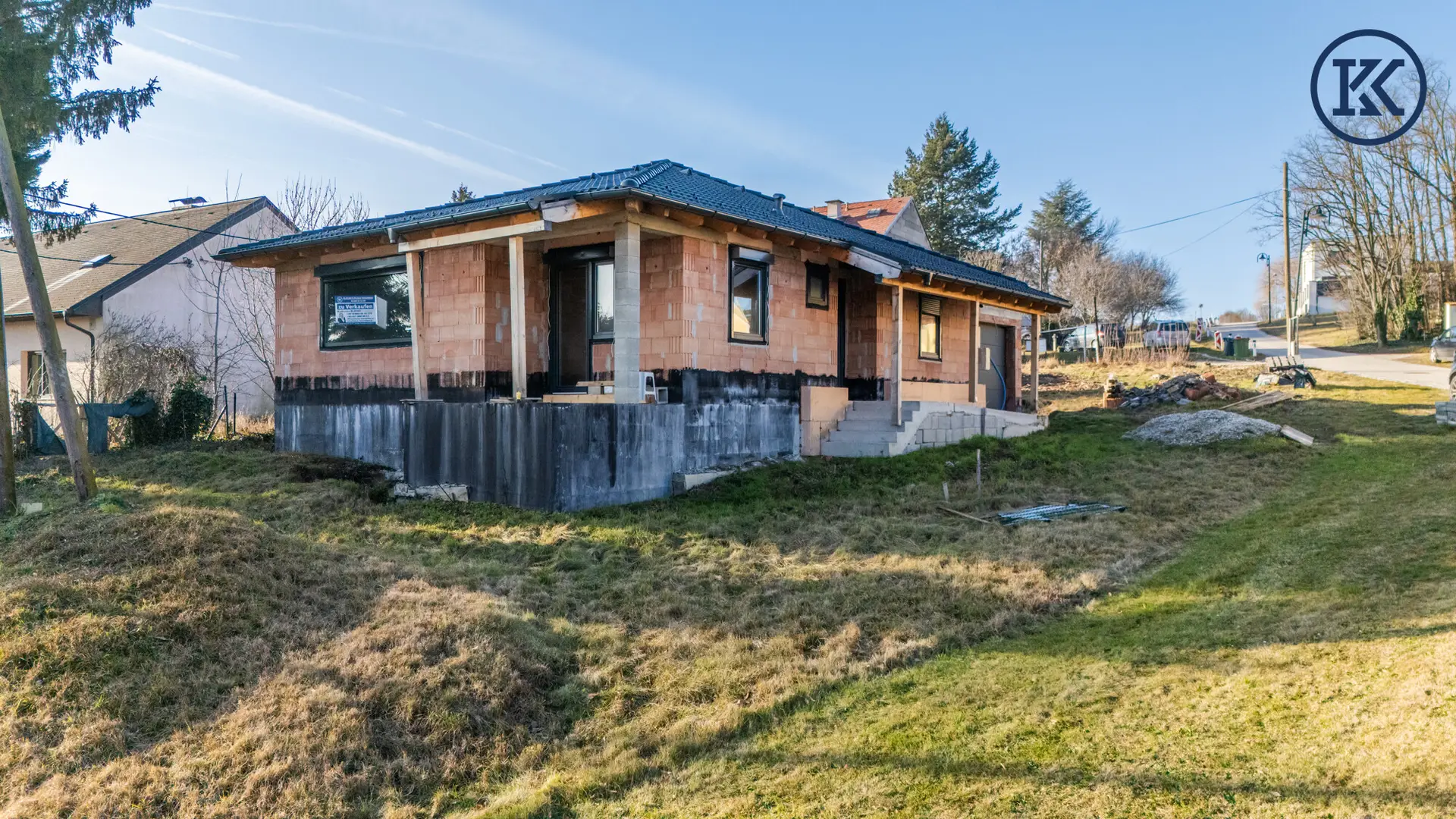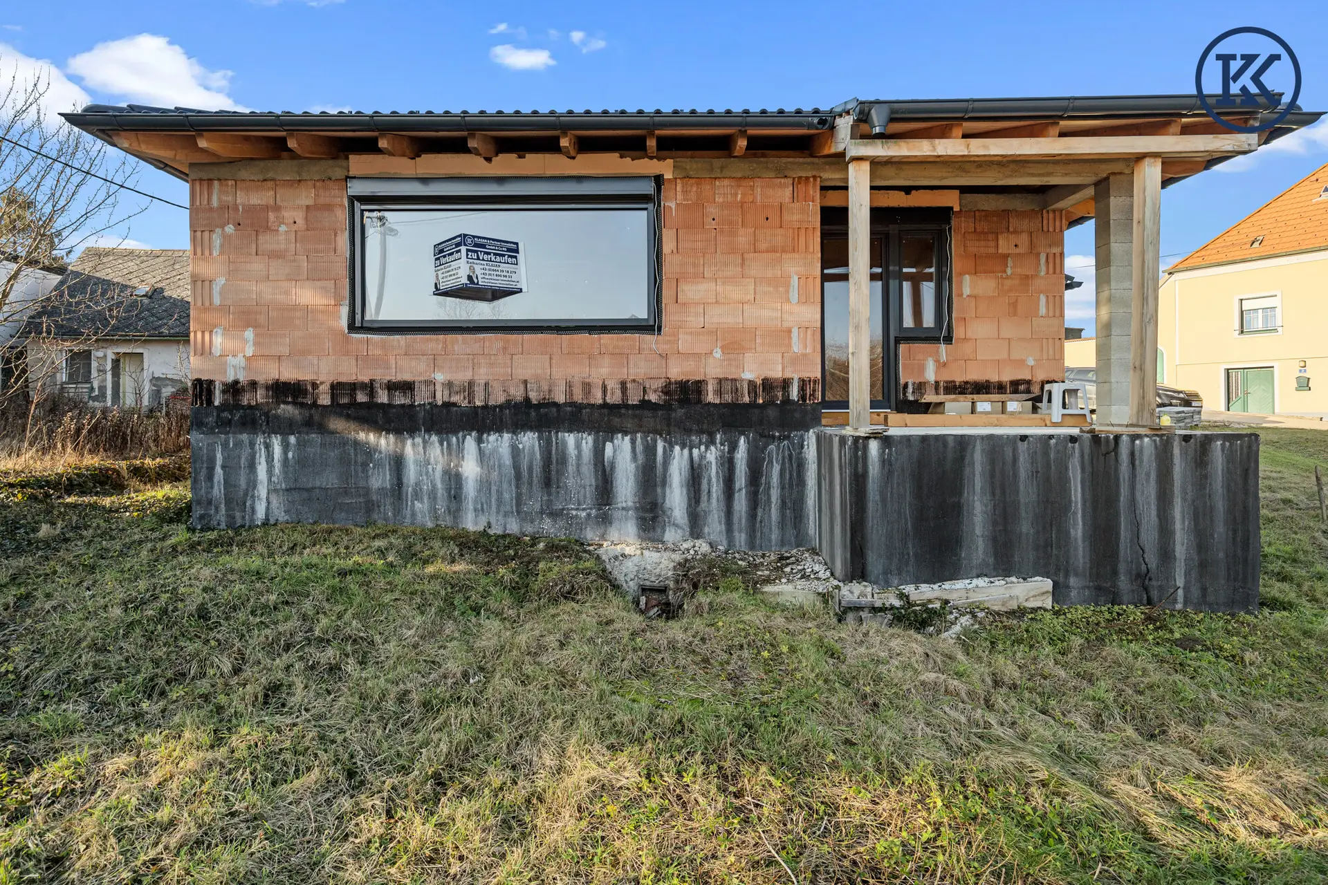 Dieser charmante Bungalow befindet sich derzeit im Rohbauzustand und bietet Ihnen die seltene Möglichkeit, Ihr zukünftiges Zuhause ganz nach Ihren Vorstellungen zu gestalten. Auf einer Wohnfläche von etwa 77 m² finden Sie ein Vorzimmer, eine separate Toilette, eine offene Wohnküche mit Zugang zu einem kleinen Balkon, zwei Schlafzimmer, ein Badezimmer mit WC sowie ein zusätzliches Kinderzimmer. Ergänzt wird das Haus durch einen Technikraum und eine Garage von ca. 18 m². Das großzügige Grundstück mit insgesamt 879 m² bietet Ihnen darüber hinaus viel Raum für einen Garten, Freizeitaktivitäten oder individuelle Gestaltungsideen. Da das Gebäude noch nicht fertiggestellt ist, haben Sie die Freiheit, Fassade, Dämmung, Bodenbeläge, Isolierung und Innenausstattung ganz nach Ihren Wünschen zu wählen und so ein Haus zu schaffen, das perfekt zu Ihnen passt.