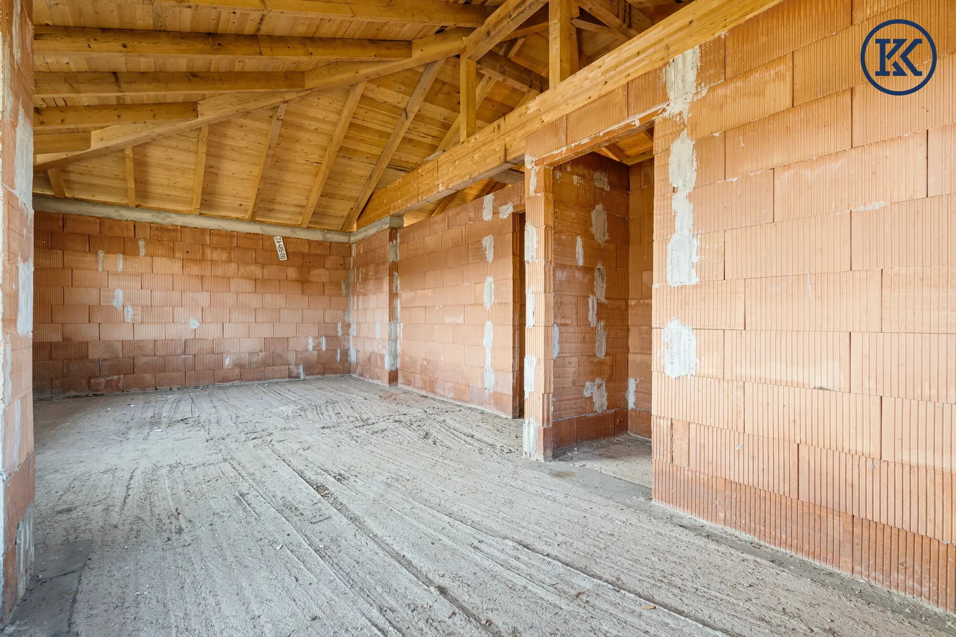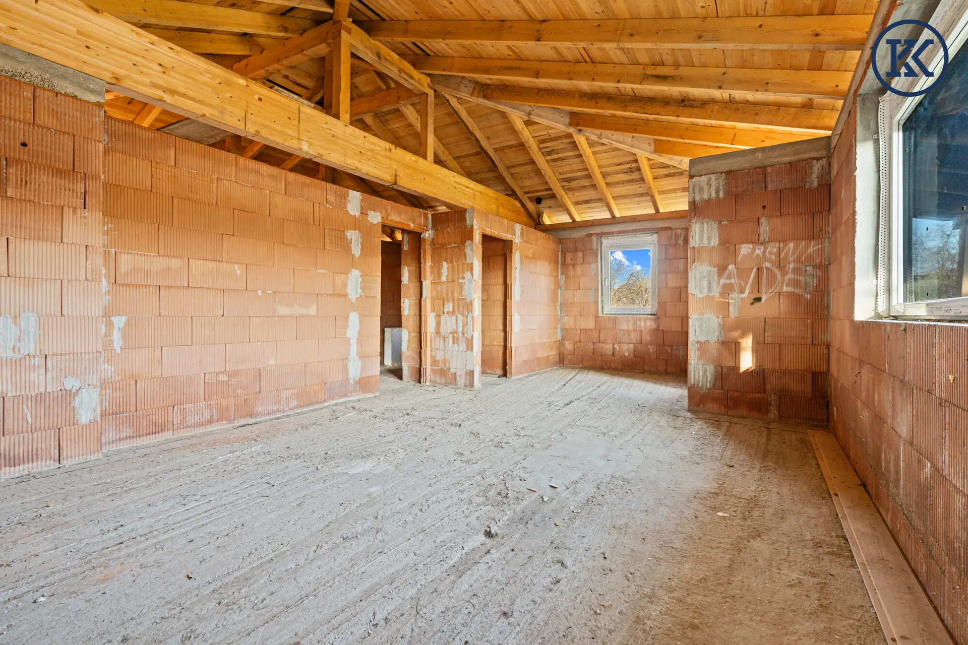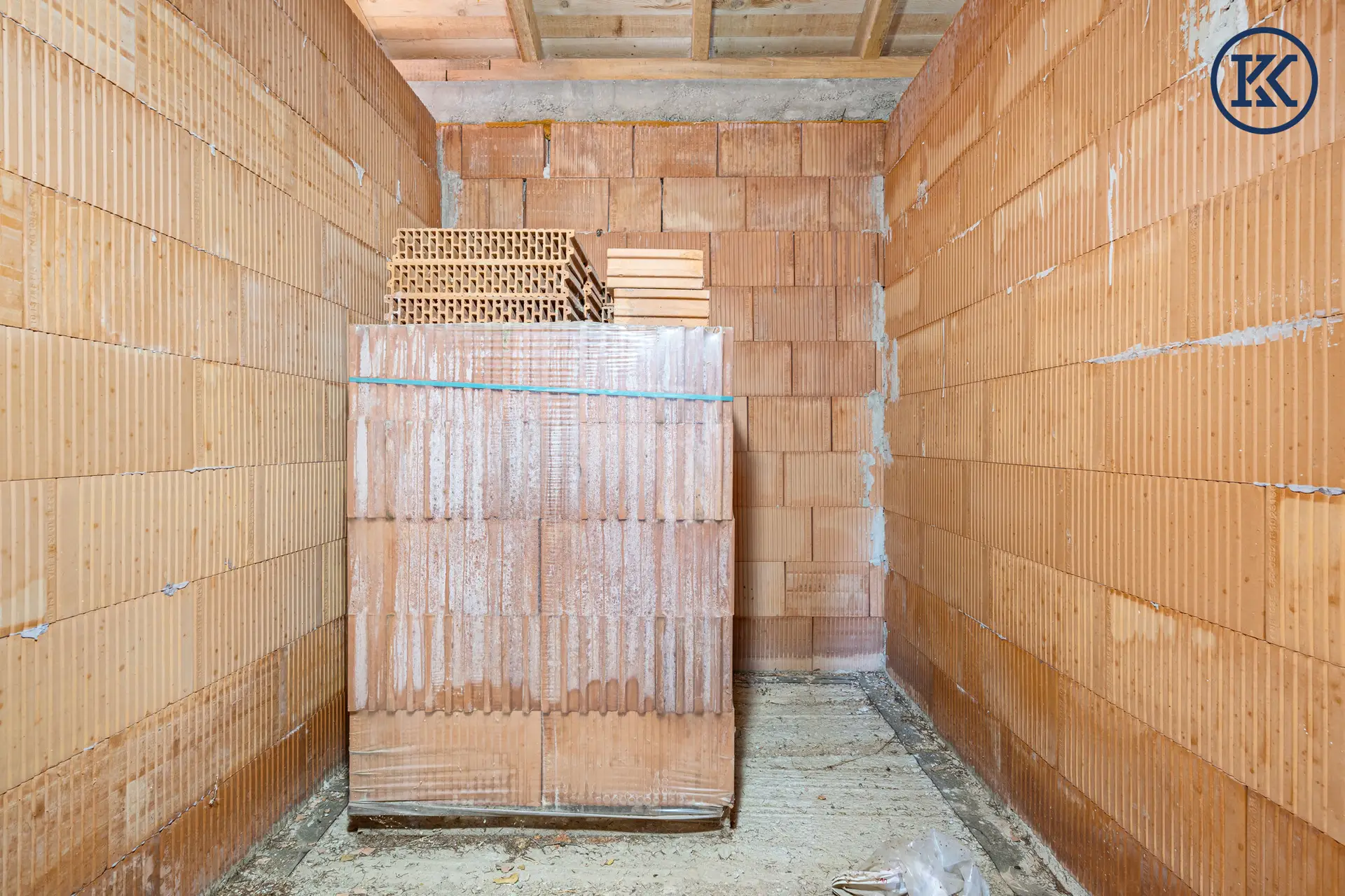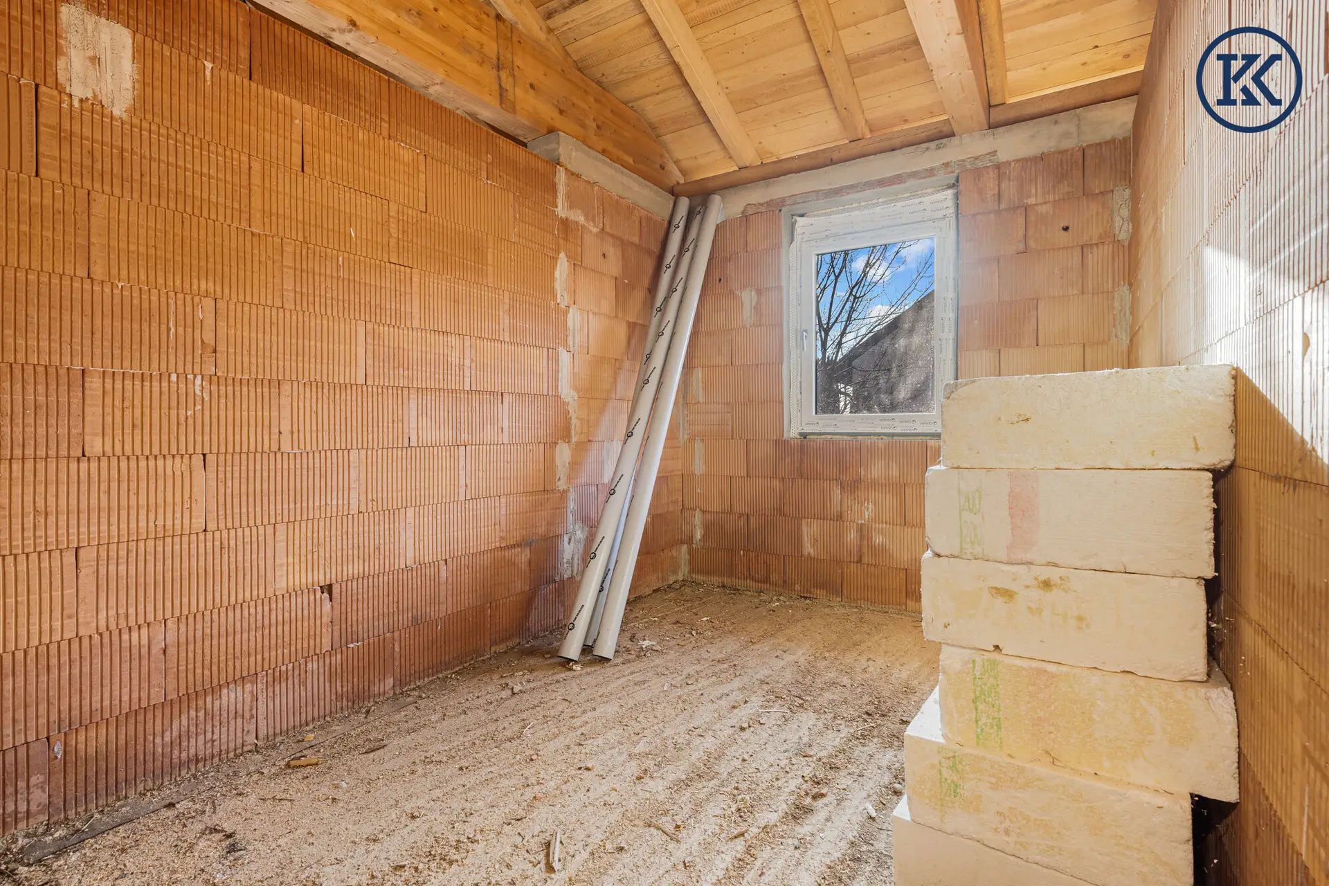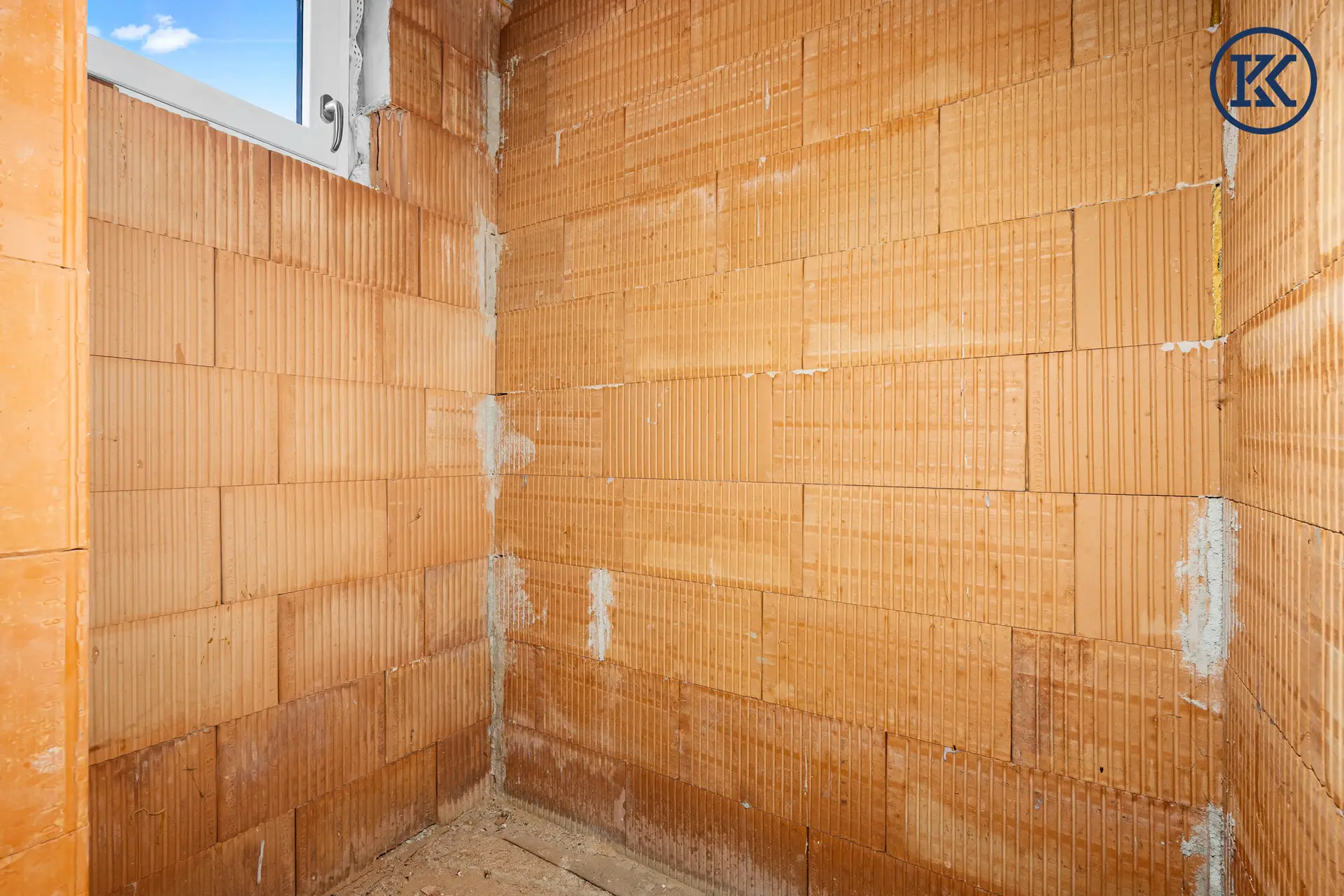 Dieser charmante Bungalow befindet sich derzeit im Rohbauzustand und bietet Ihnen die seltene Möglichkeit, Ihr zukünftiges Zuhause ganz nach Ihren Vorstellungen zu gestalten. Auf einer Wohnfläche von etwa 77 m² finden Sie ein Vorzimmer, eine separate Toilette, eine offene Wohnküche mit Zugang zu einem kleinen Balkon, zwei Schlafzimmer, ein Badezimmer mit WC sowie ein zusätzliches Kinderzimmer. Ergänzt wird das Haus durch einen Technikraum und eine Garage von ca. 18 m². Das großzügige Grundstück mit insgesamt 879 m² bietet Ihnen darüber hinaus viel Raum für einen Garten, Freizeitaktivitäten oder individuelle Gestaltungsideen. Da das Gebäude noch nicht fertiggestellt ist, haben Sie die Freiheit, Fassade, Dämmung, Bodenbeläge, Isolierung und Innenausstattung ganz nach Ihren Wünschen zu wählen und so ein Haus zu schaffen, das perfekt zu Ihnen passt.