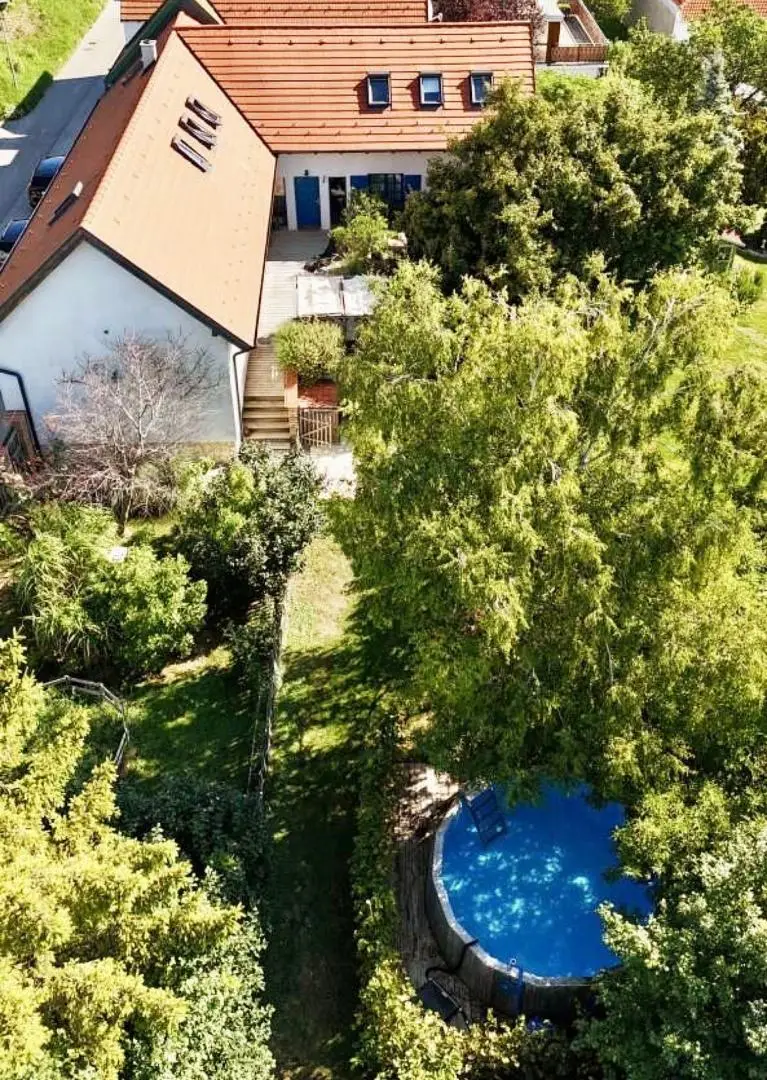 Der Garten zeigt sich als grüne Oase mit hoher Aufenthaltsqualität. Überdachte Terrassenbereiche, gewachsene Bäume, Obstgehölze und liebevoll gestaltete Rückzugsorte schaffen eine natürliche, entspannte Atmosphäre. Der 2021 errichtete Pool mit Holzverkleidung fügt sich harmonisch in das Gesamtbild ein und sorgt an warmen Tagen für angenehme Erfrischung. Eine Feuerstelle und ein hauseigener Brunnen unterstreichen den durchdachten Charakter dieses Außenbereichs.