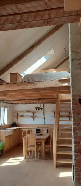 Alte Balken vorhanden sowie neue Bretter zum Verlegen um Wohnraum zu schaffen