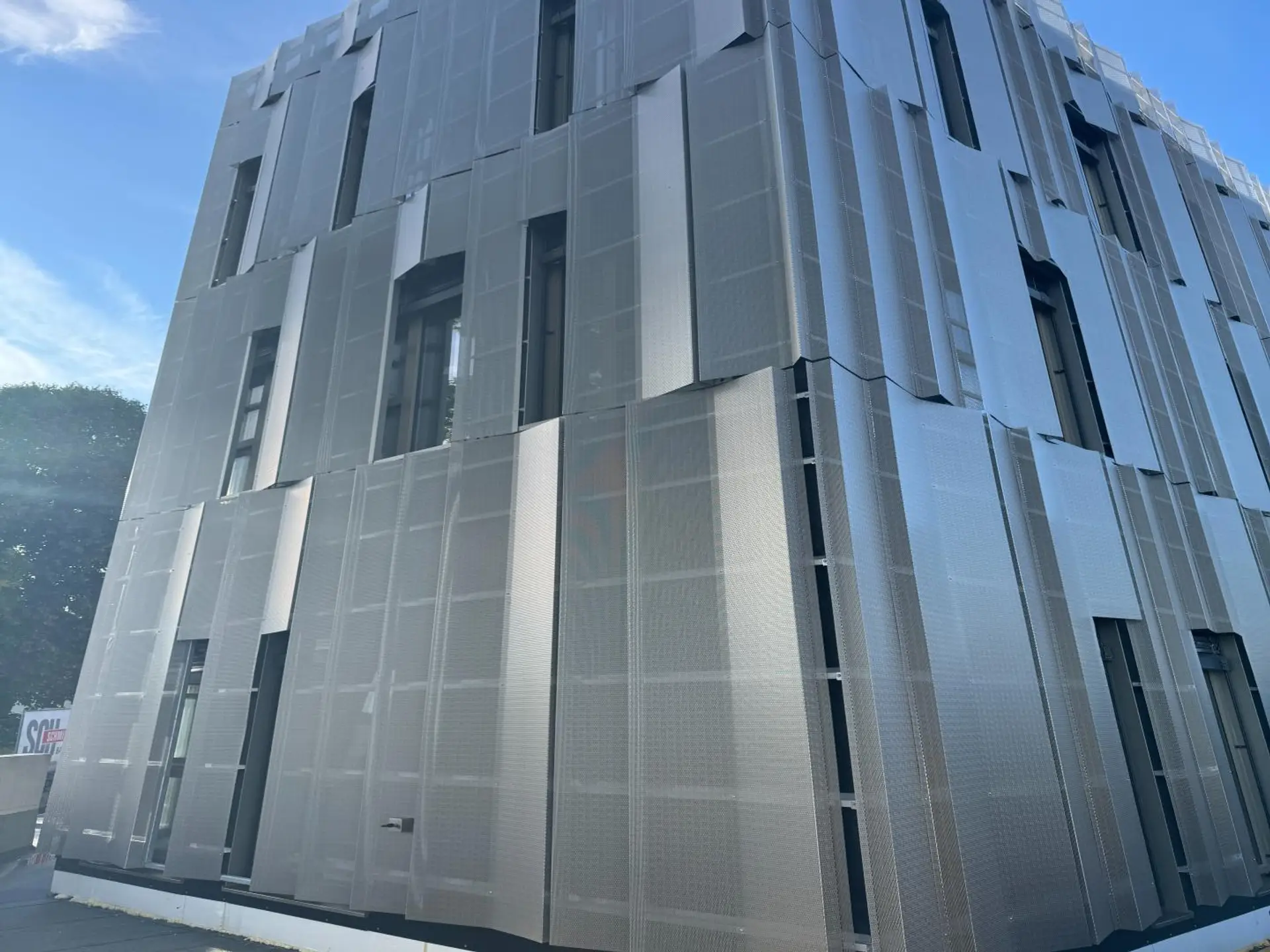 Sonnenschutz, teilweise durch Lochblech-Fassade oder Raffstore