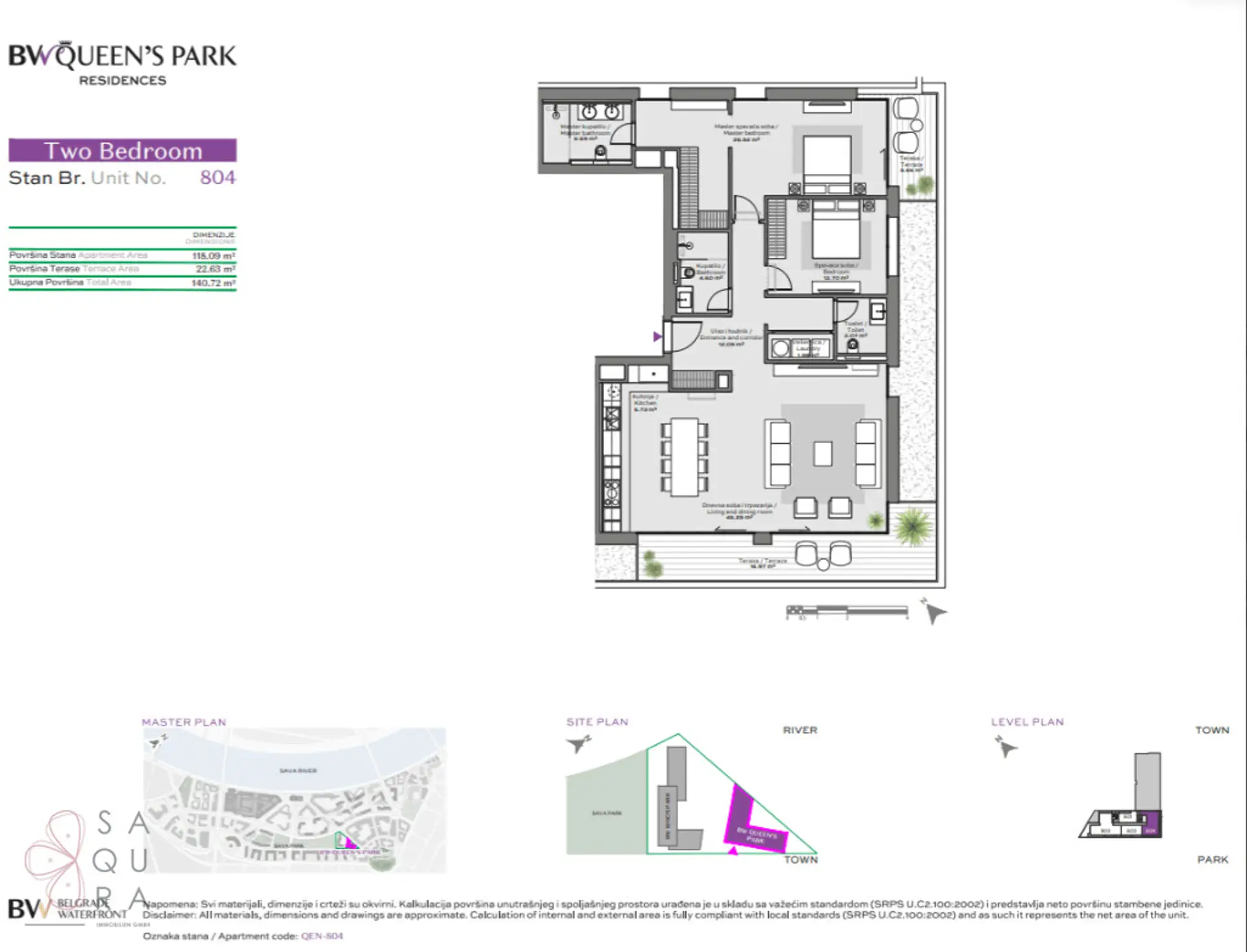 Stan 804 predstavlja idealan spoj luksuza, funkcionalnosti i prostranosti – pravo utočište za porodice, strane investitore ili one koji žele mir i prestiž u srcu Beograda. Smešten uz Savski park i na nekoliko minuta hoda do reke Save, ovaj stan nudi udoban dnevni boravak, prostrane spavaće sobe, dve kompletne kupaonice i veliku terasu za uživanje u svakom trenutku dana.