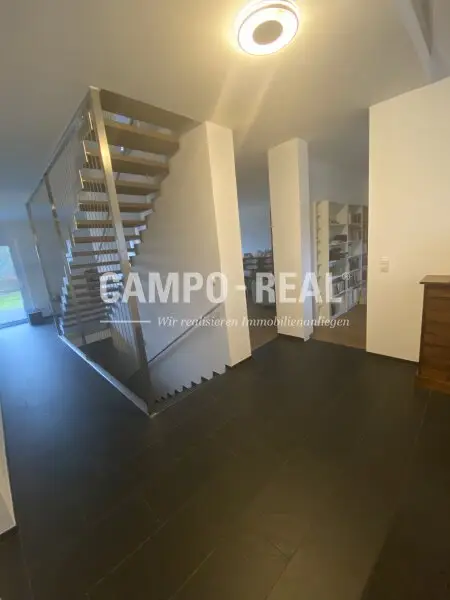 Die angebotene Liegenschaft besticht mit ihrem puristischen Stil der gegenwärtigen Architekturmoderne und beeindruckt mit einem durchgängig gehobenen Stil sowohl bei den verwendeten Materialien als auch bei der Ausführung insgesamt. Dazu kommen der sehr gut durchdachte Raumschnitt im Wohnbereich und der sehr schön und praktisch angelegte Garten, wodurch ein großzügiges Wohnen und ggf. auch Arbeiten für eine mehrköpfige Familie gegeben ist und sämtliche Anforderungen an ein gemütliches, praktisches, freundliches und repräsentatives Daheim erfüllt werden.