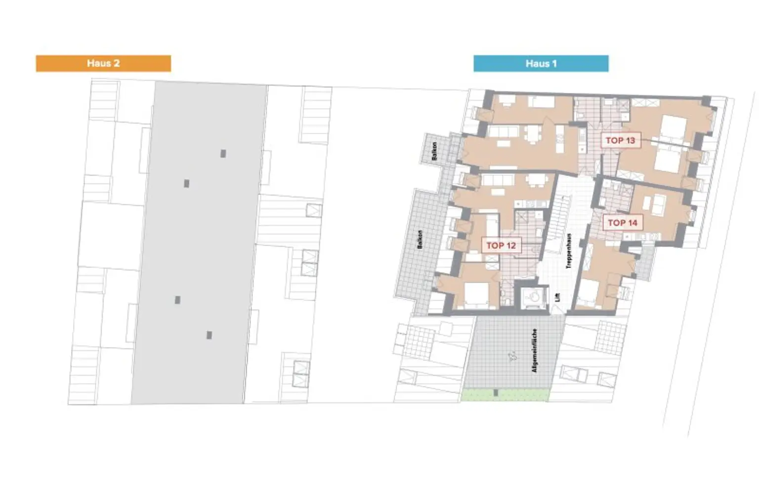Top 13 in Haus 1 befindet sich im 3. Obergeschoss und überzeugt durch eine großzügige Raumaufteilung sowie einer attraktiven Freifläche.